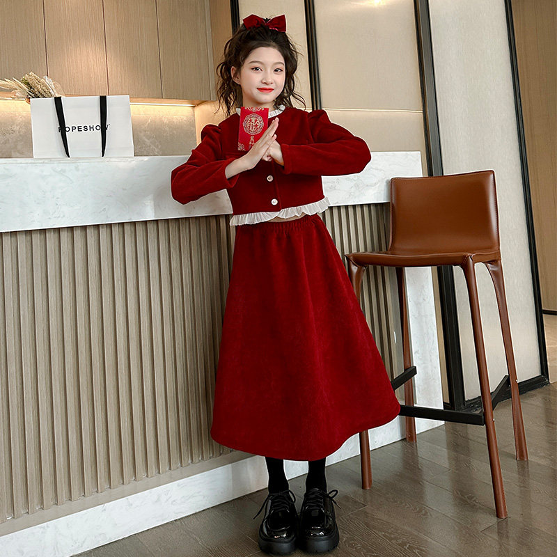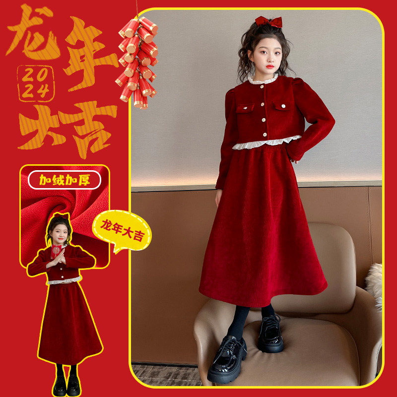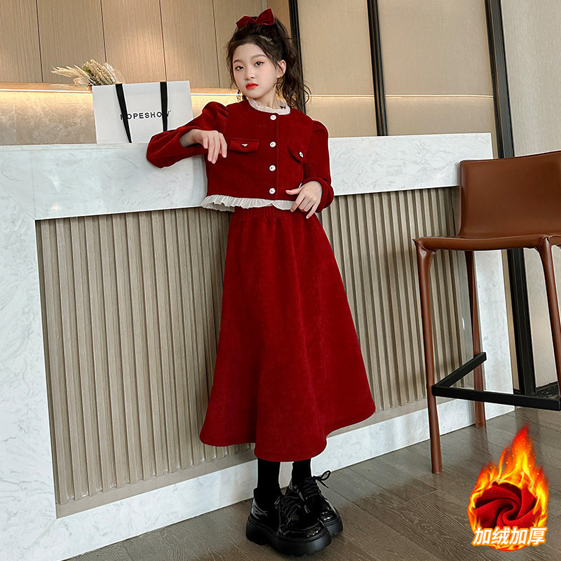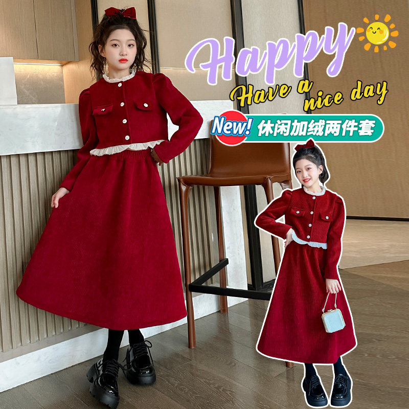 小黄鸭2025新款女童小香风套装秋冬洋气冬季连衣裙中大童新年服潮