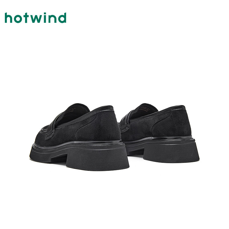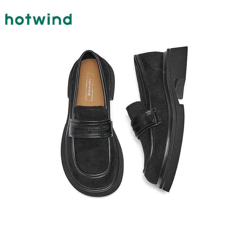 热风复古乐福鞋女2026年春季新款厚底增高通勤女鞋百搭黑色小皮鞋