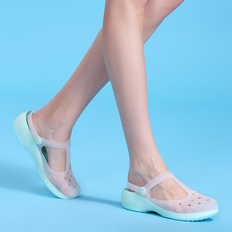 果冻洞洞鞋外穿软底厚底中跟包头夏季百搭女鞋海边沙滩鞋拖鞋凉鞋