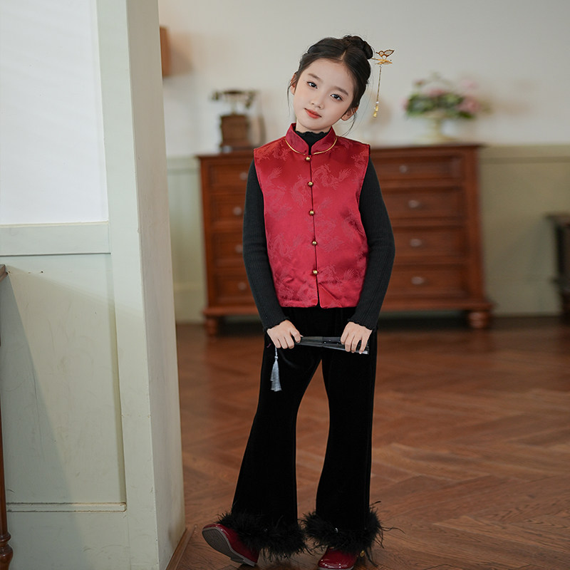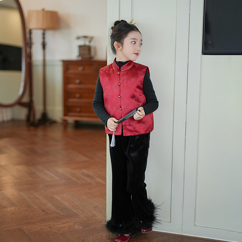 女童国风马甲拜年服唐装上衣2026秋冬新款儿童复古新中式童装衣服