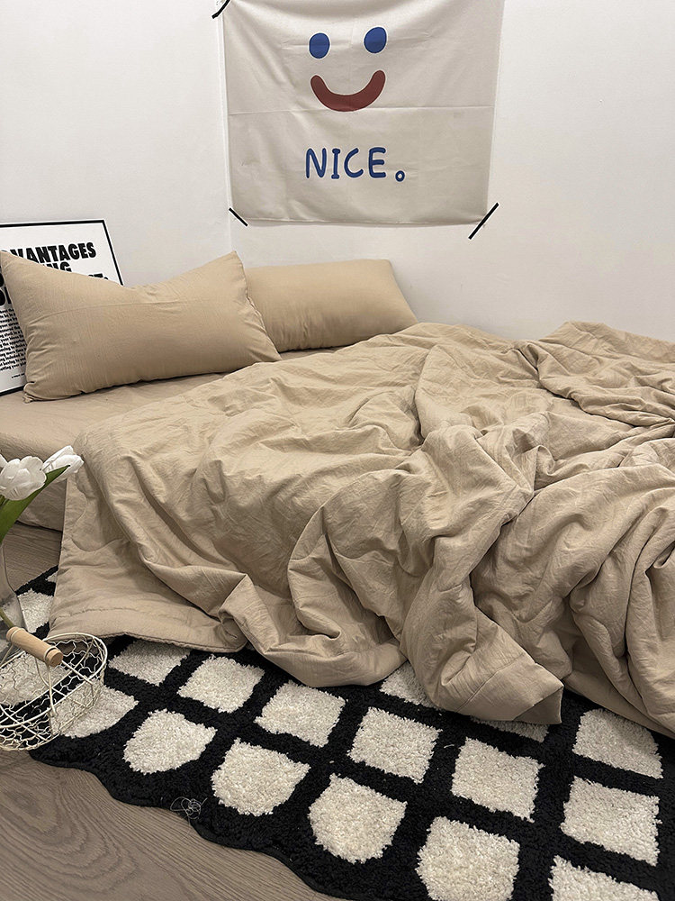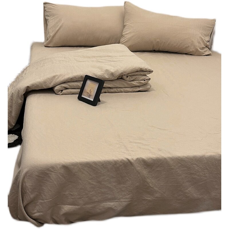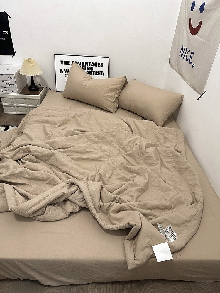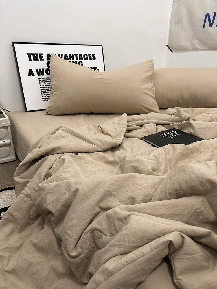 温柔莫兰迪奶茶色水洗棉夏凉被四件套1.8床笠款空调被夏季薄被芯