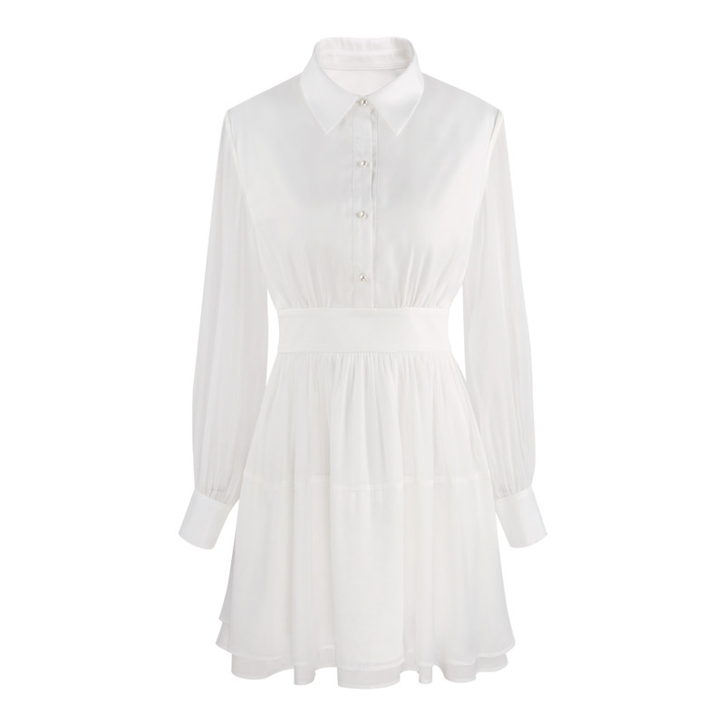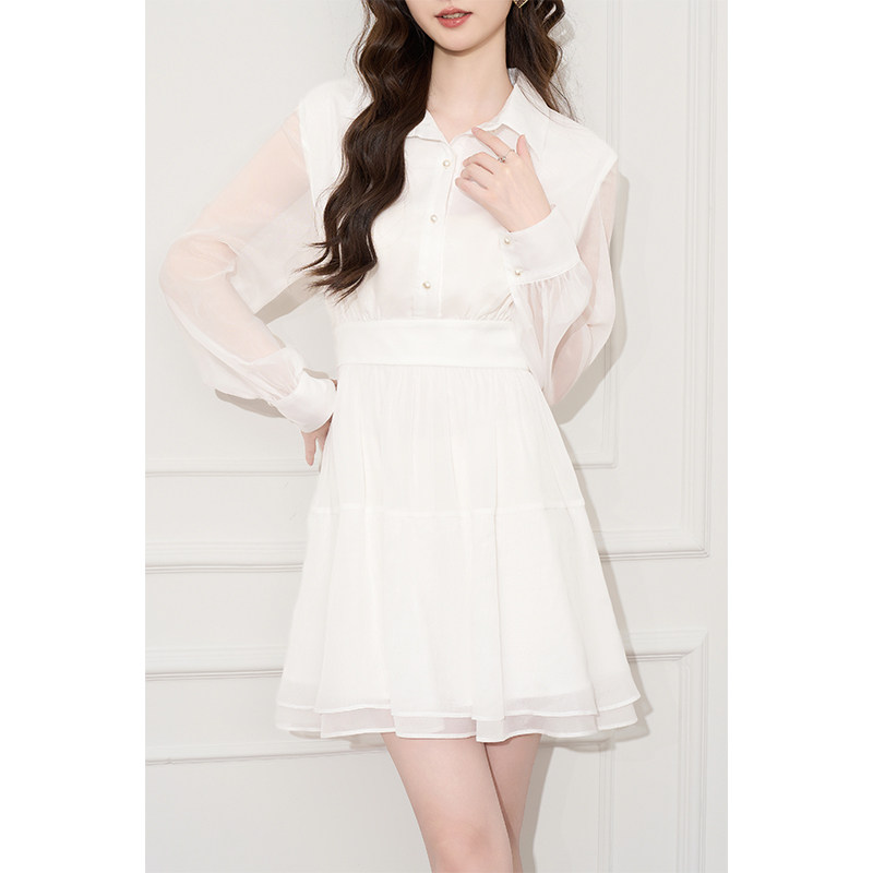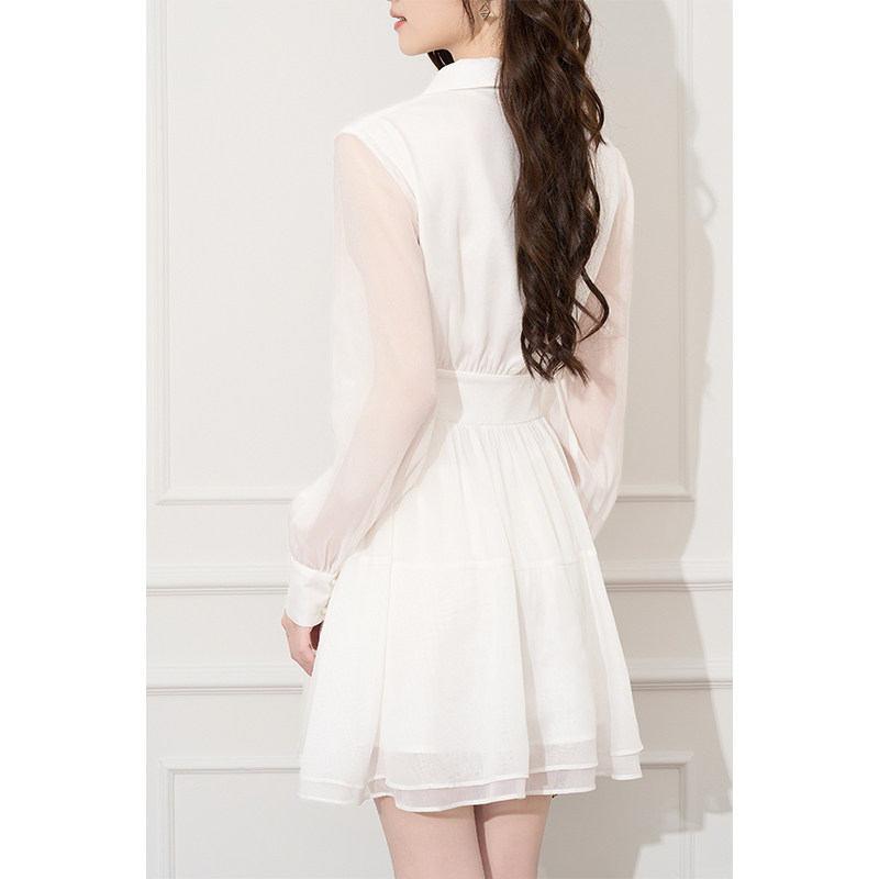 法式气质白色长袖连衣裙2026新款早春设计感小众短款收腰春季裙子