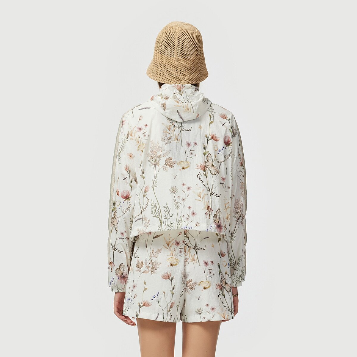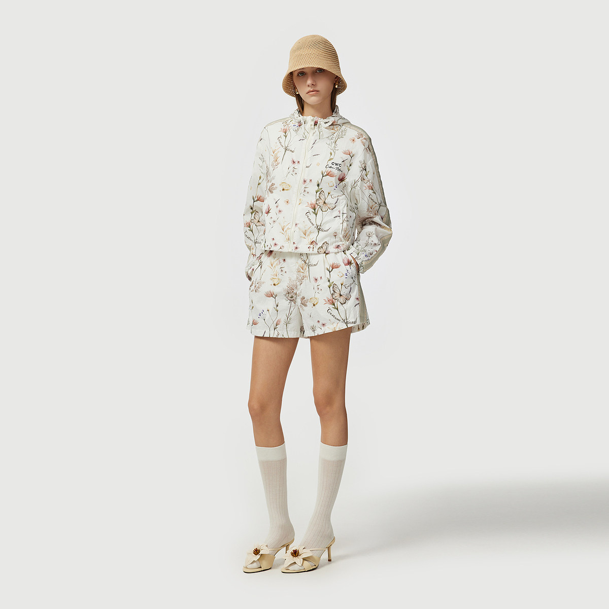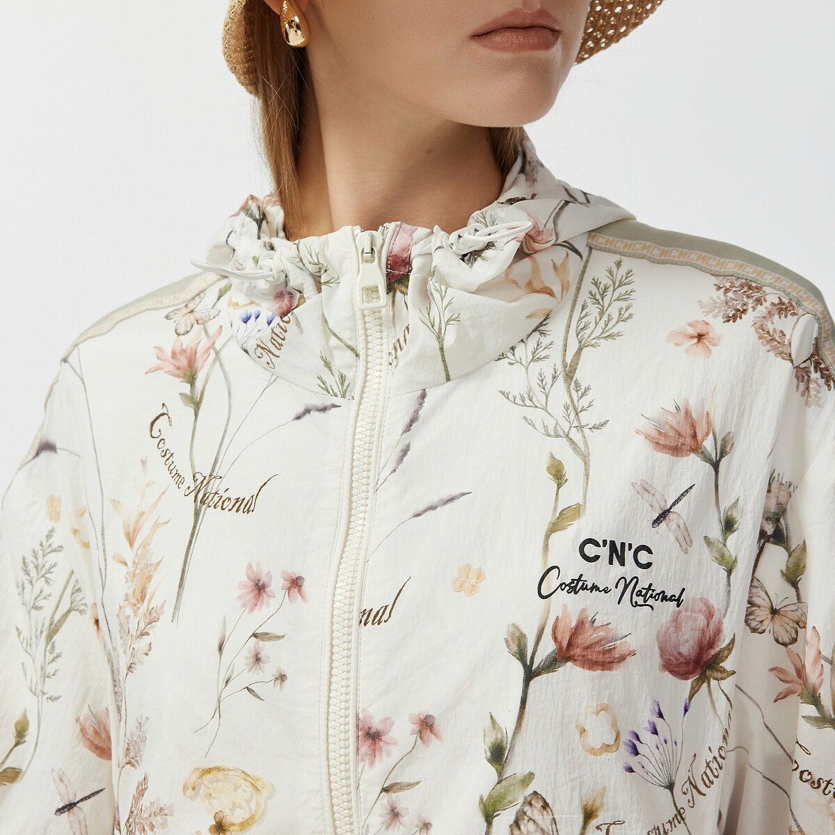 CNC女装官方2026早春新款运动休闲连帽花卉印花开衫薄款外套女