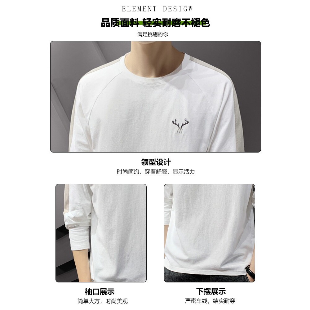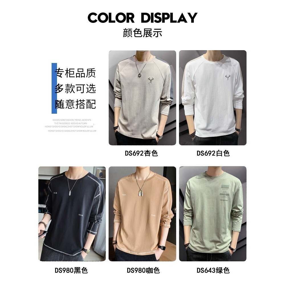 男士长袖t恤纯棉春秋季宽松刺绣打底衫上衣男款潮牌休闲圆领卫衣