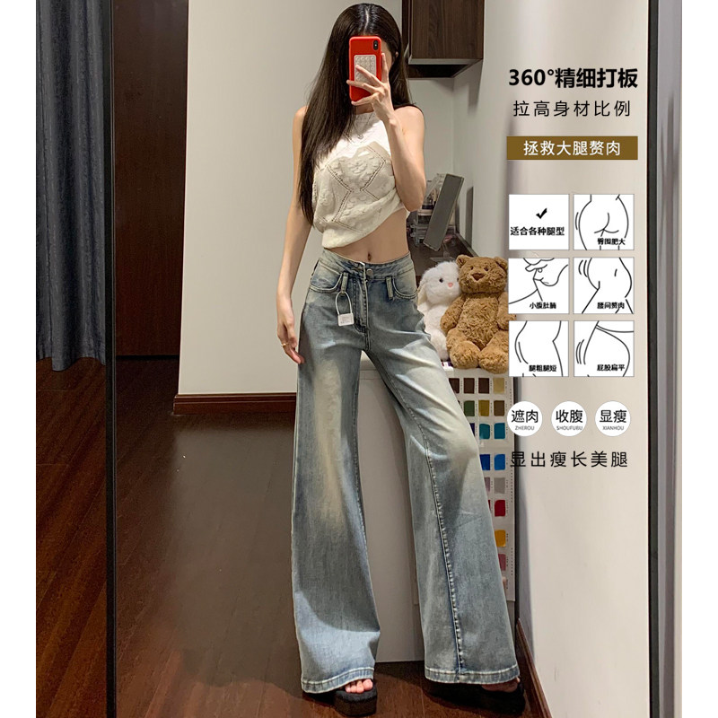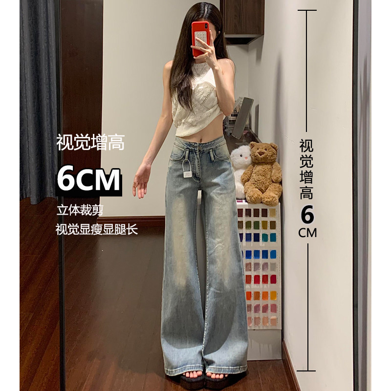 浅色不贴腿微喇叭牛仔裤女2026新款夏季薄款低腰修身小个子直筒裤