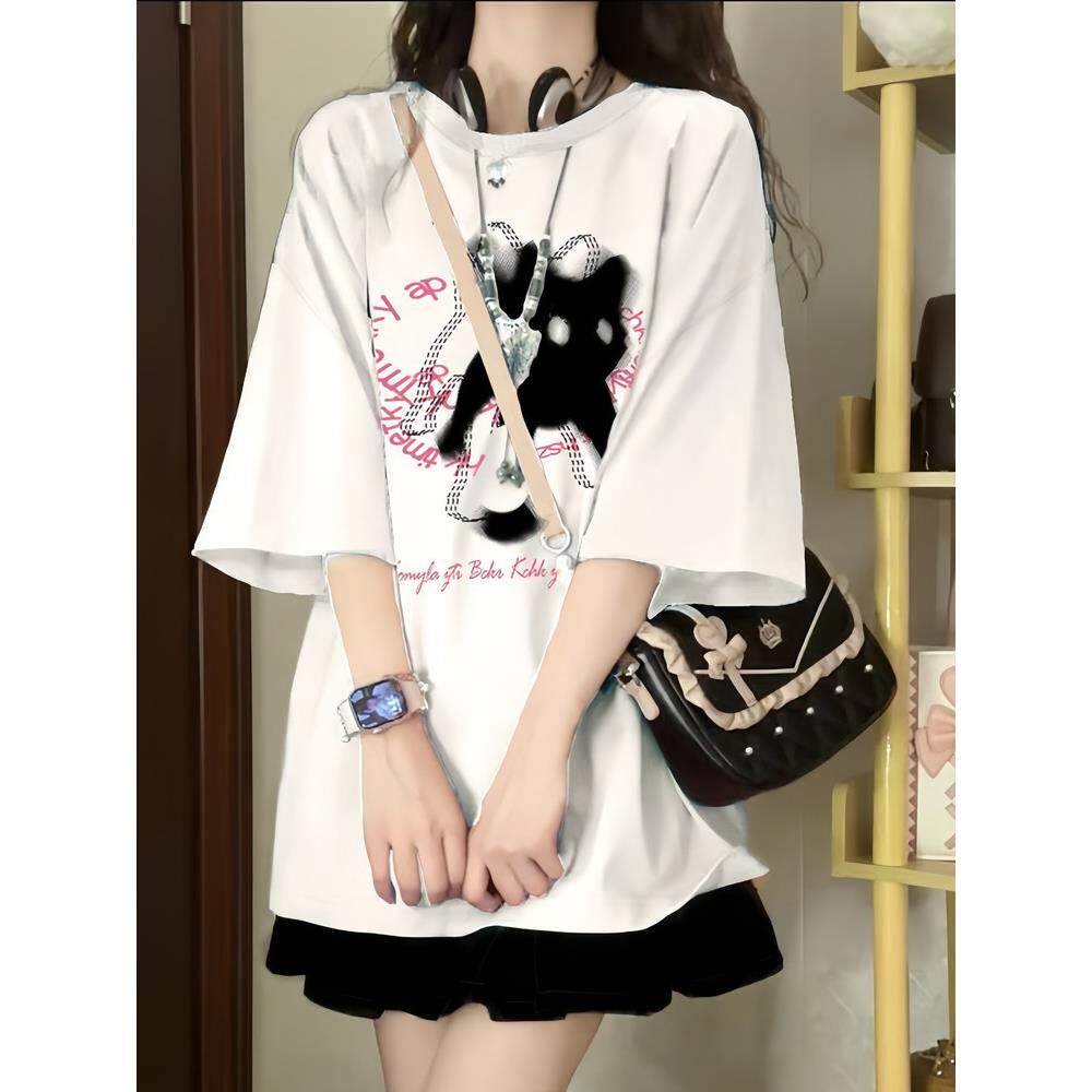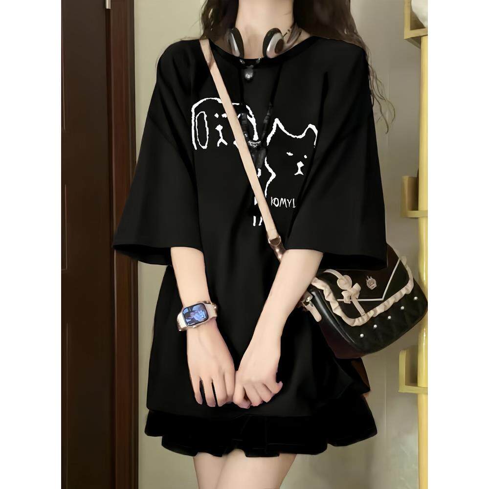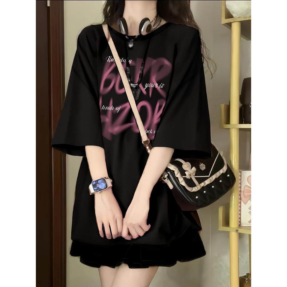 学院风黑色百搭短袖t恤女大童夏装2026初中高中学生宽松半袖上衣