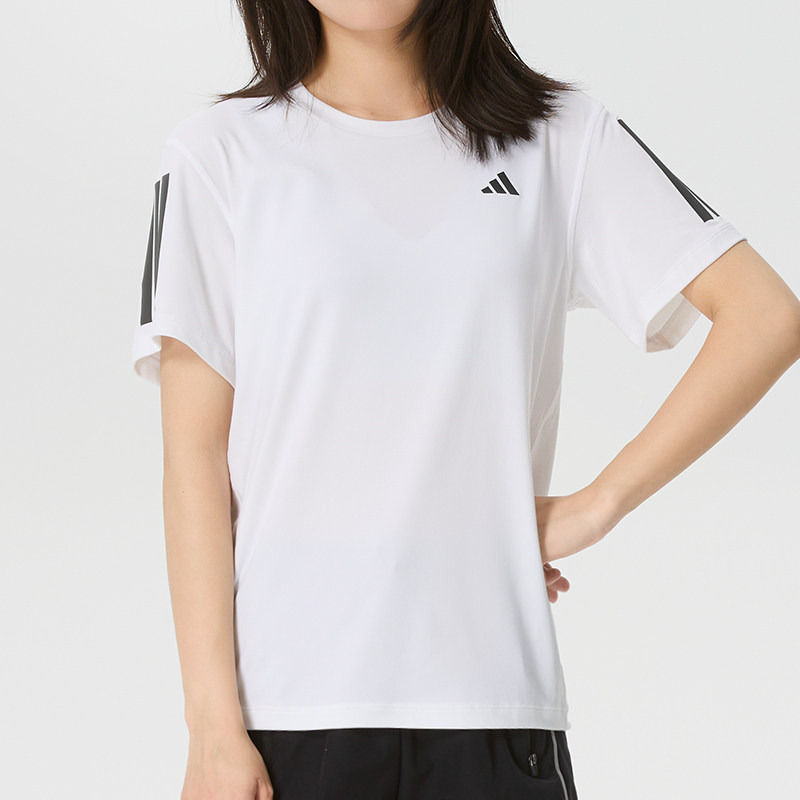 adidas阿迪达斯短袖女2026夏季新款三条纹圆领速干运动T恤KU8746