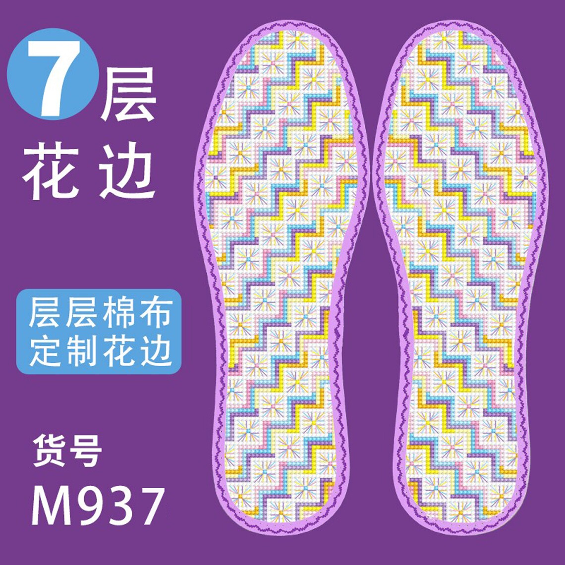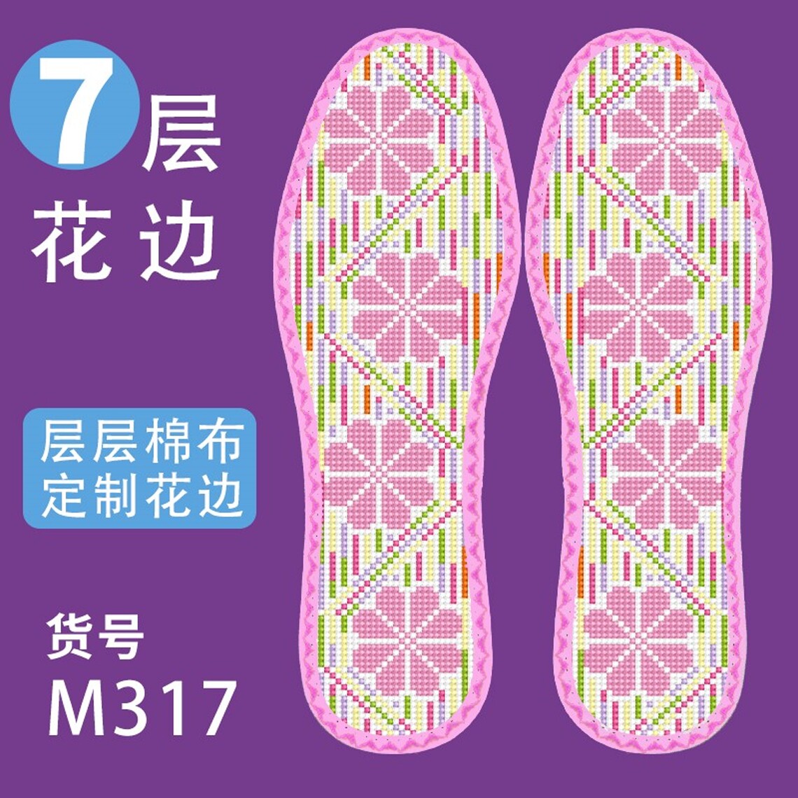 买五送一新款半成品手工十字绣鞋垫中小格带花边七层纯棉布鞋垫