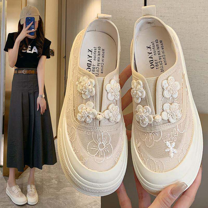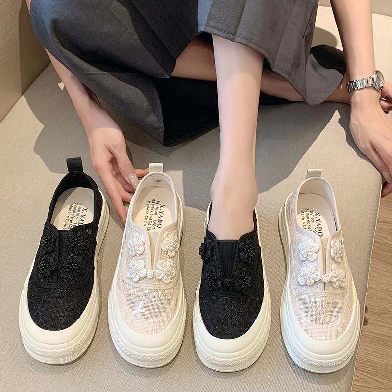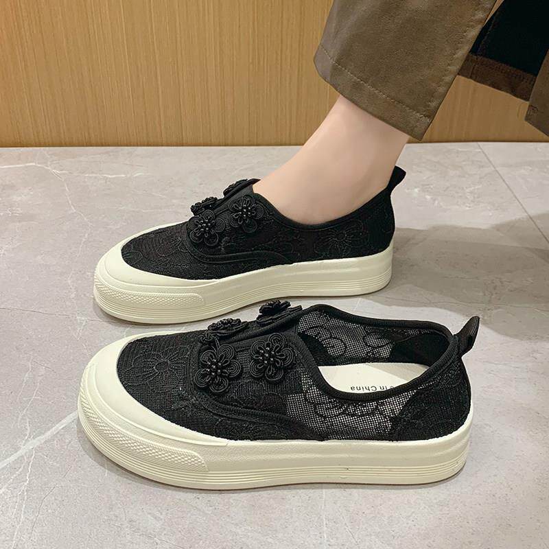 春夏风女鞋配裙子运动鞋薄款透气网面渔夫鞋34码厚底板0313r