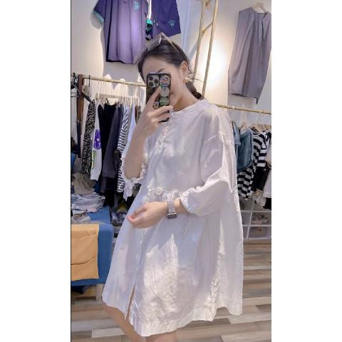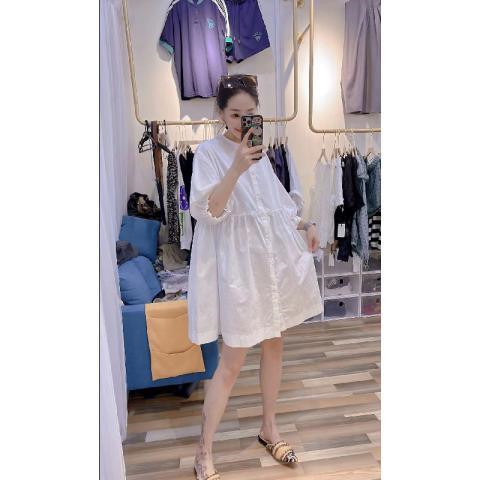 300斤大码欧洲站夏季新款抽绳收腰洋气衬衫女纽扣开衫宽松连衣裙