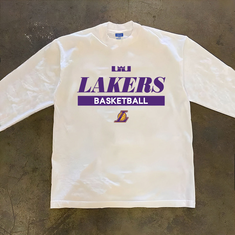 湖人队詹姆斯东契奇短袖T恤篮球运动球衣休闲重磅纯棉半袖打底衫
