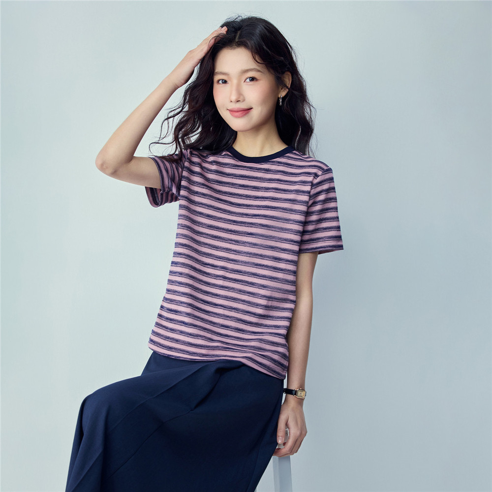 311线报网描述:撞色条纹布立体时髦 撞色罗纹圆领休闲大方