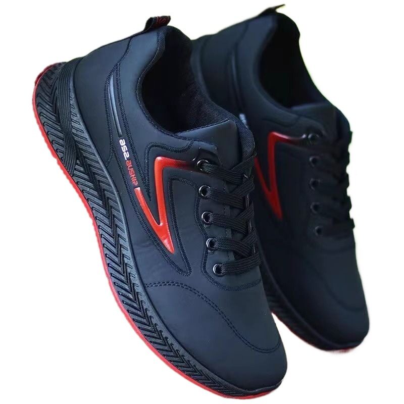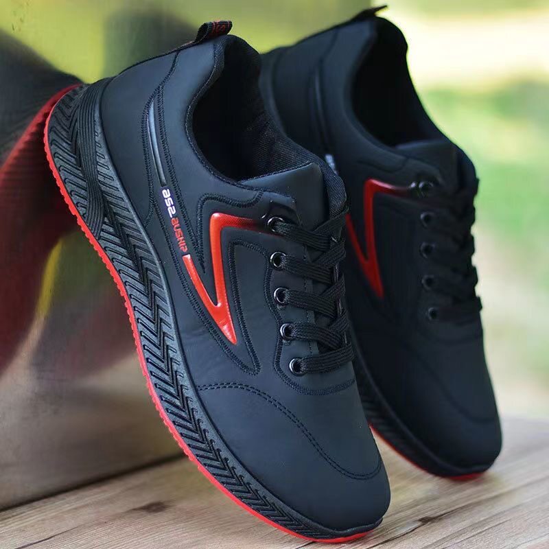 男鞋秋冬季皮面防水休闲鞋防滑耐磨运动鞋男士跑步鞋鞋子黑色户外