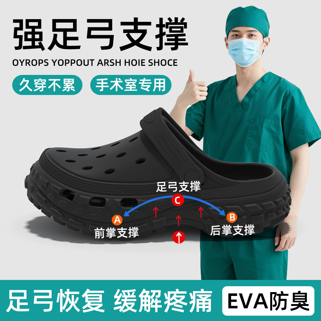 医用手术室专用洞洞鞋男士厚底夏季外穿防滑防臭踩屎感凉拖鞋男款