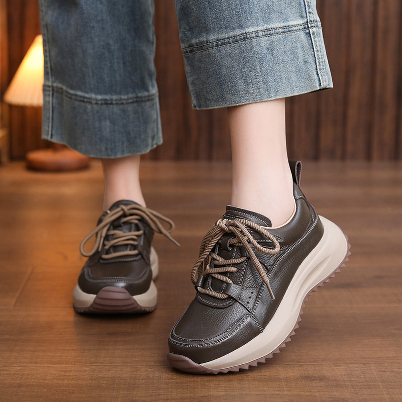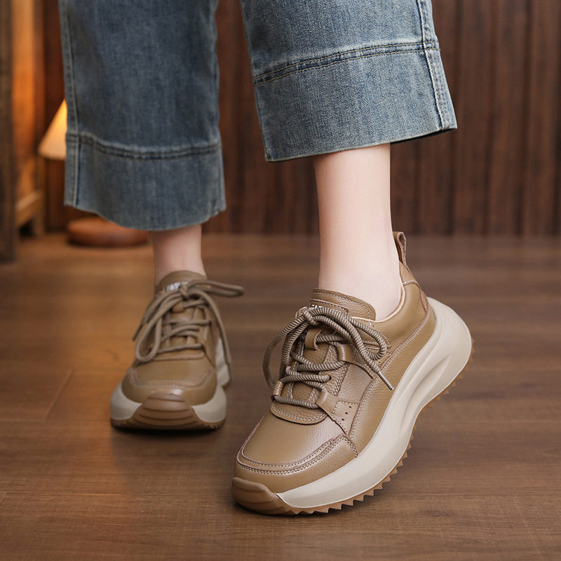 头层牛皮厚底老爹鞋女2026春秋新款舒适软底休闲鞋圆头百搭女单鞋