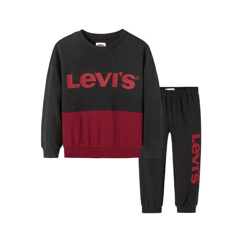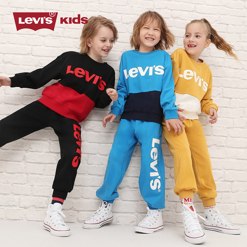 李维斯童装2026春季新款男女童套装纯棉长袖运动长裤圆领套头卫衣