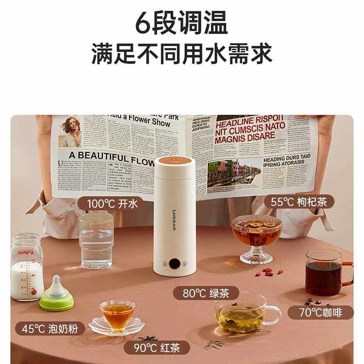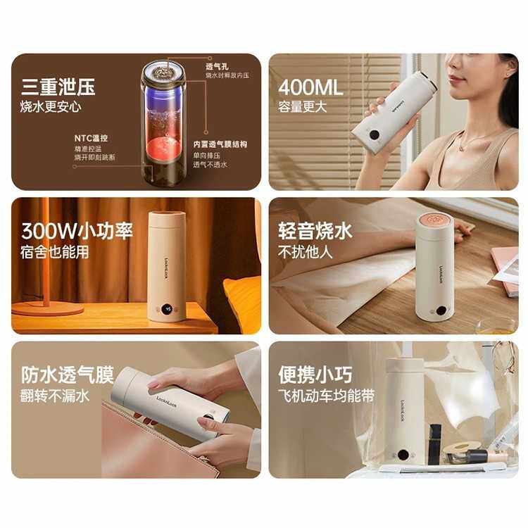 乐扣烧水杯便携式烧水壶迷你旅行出差家用小型恒温全自动电热水杯