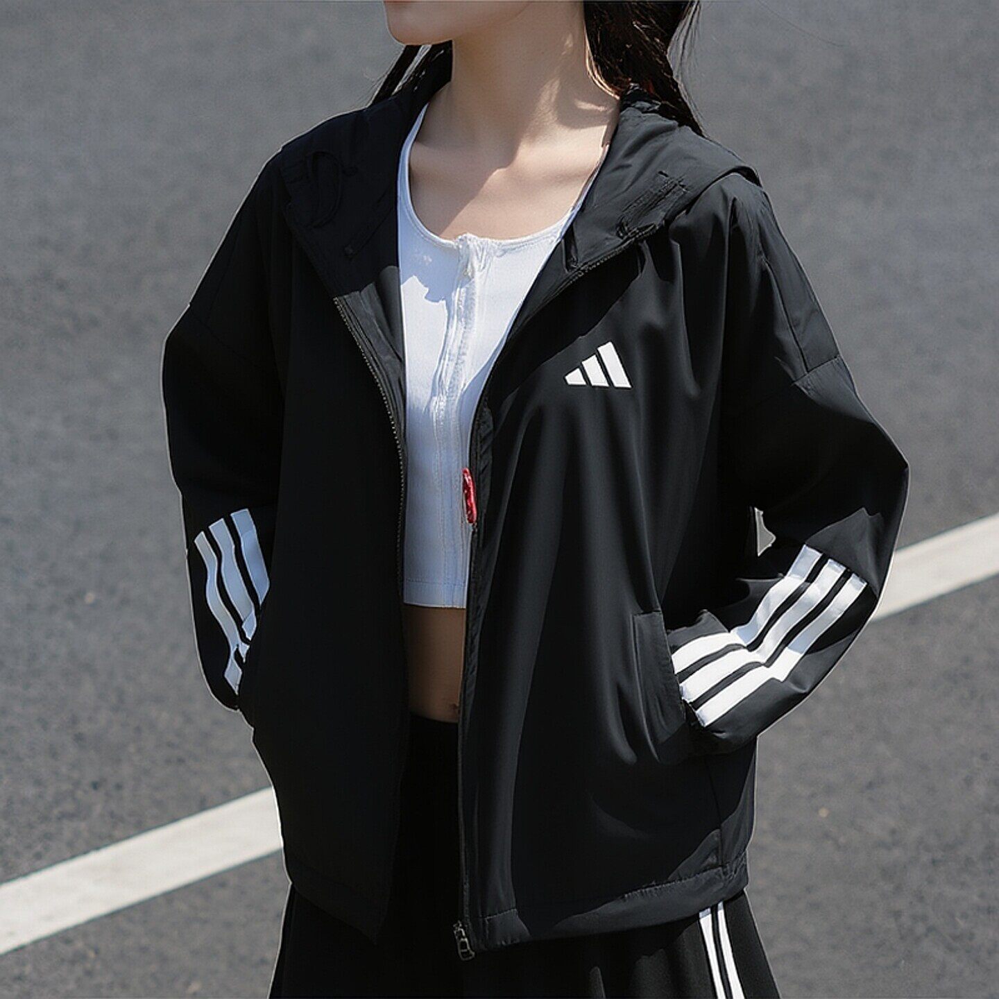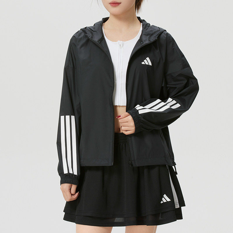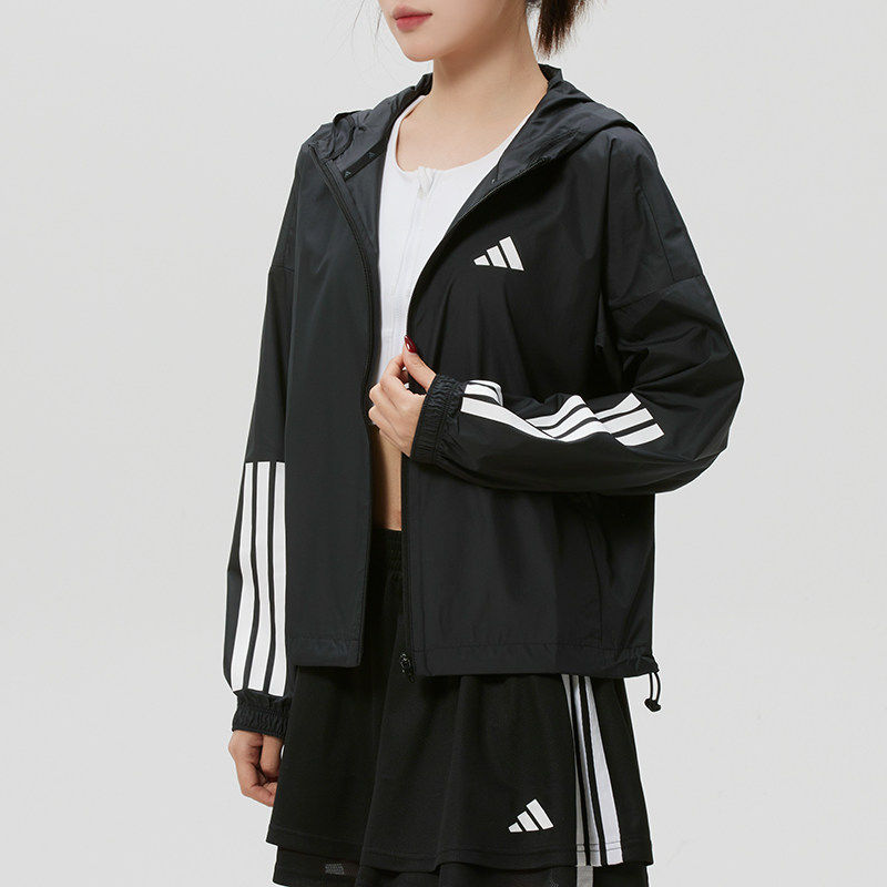 阿迪达斯外套女春季新款透气梭织棒球服快干薄款连帽防风衣JX1872