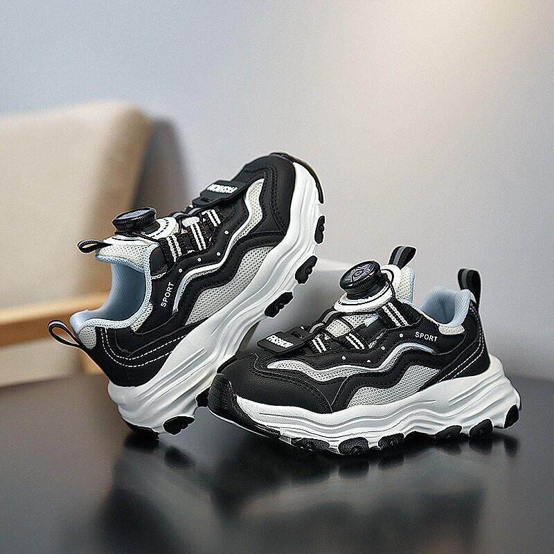 女童鞋春款2025新款儿童网面透气运动鞋中大童黑色耐脏女孩老爹鞋
