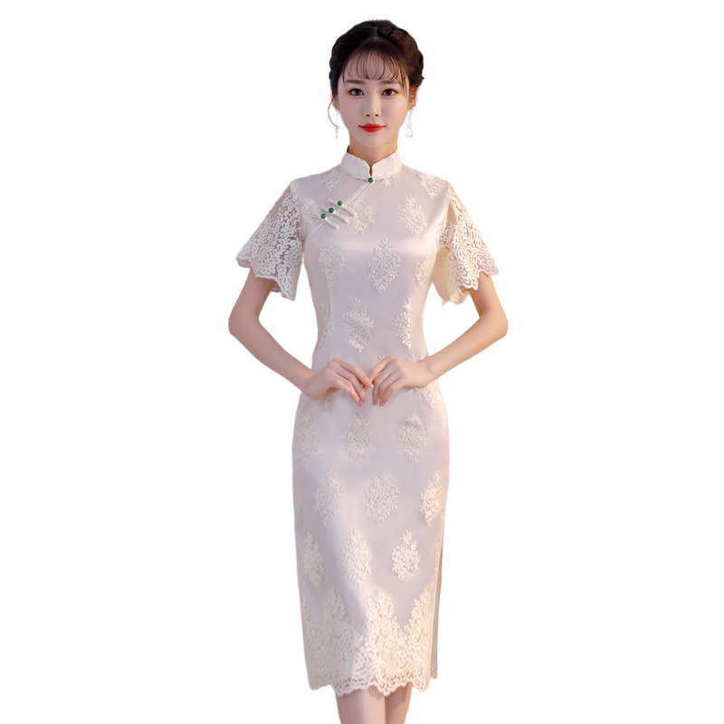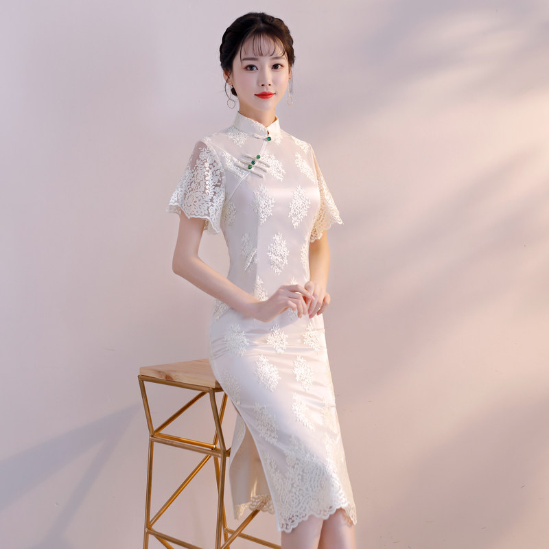 中长款蕾丝旗袍年轻款少女2026新款女改良中国风小个子旗袍连衣裙