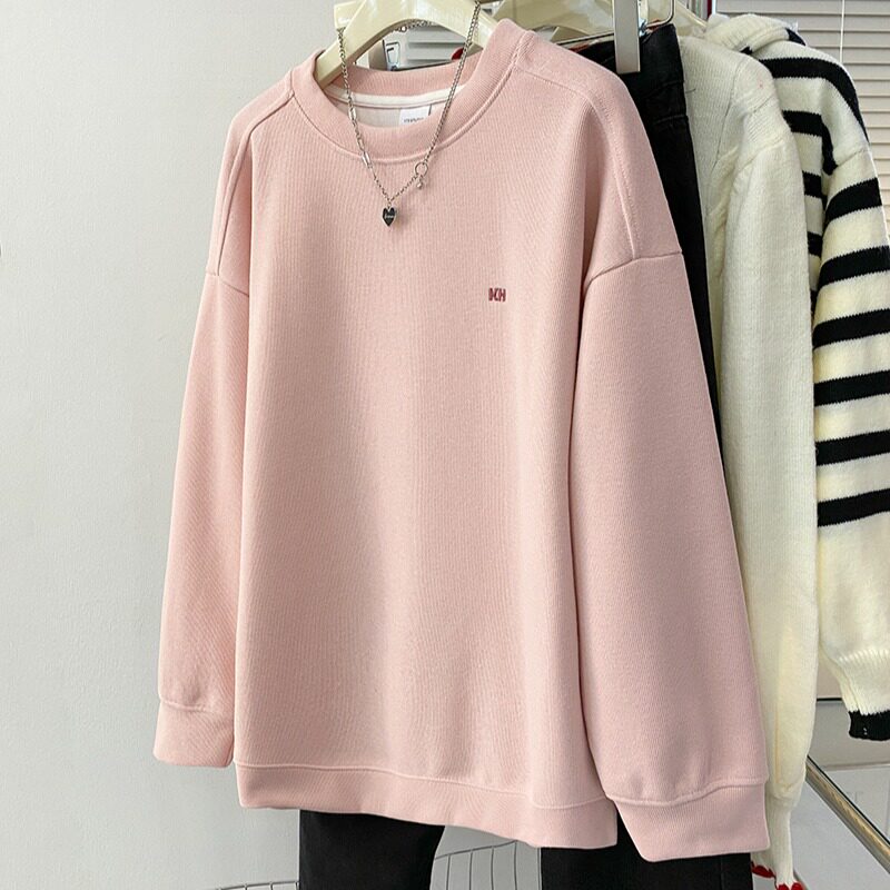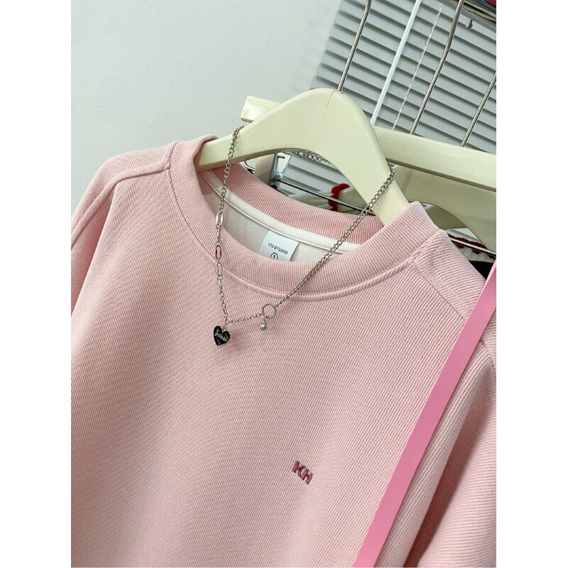 米呢卫衣女薄款刺绣花2026早春新款宽松圆领长袖t恤上衣女装