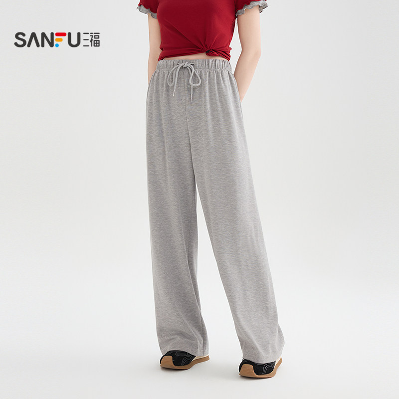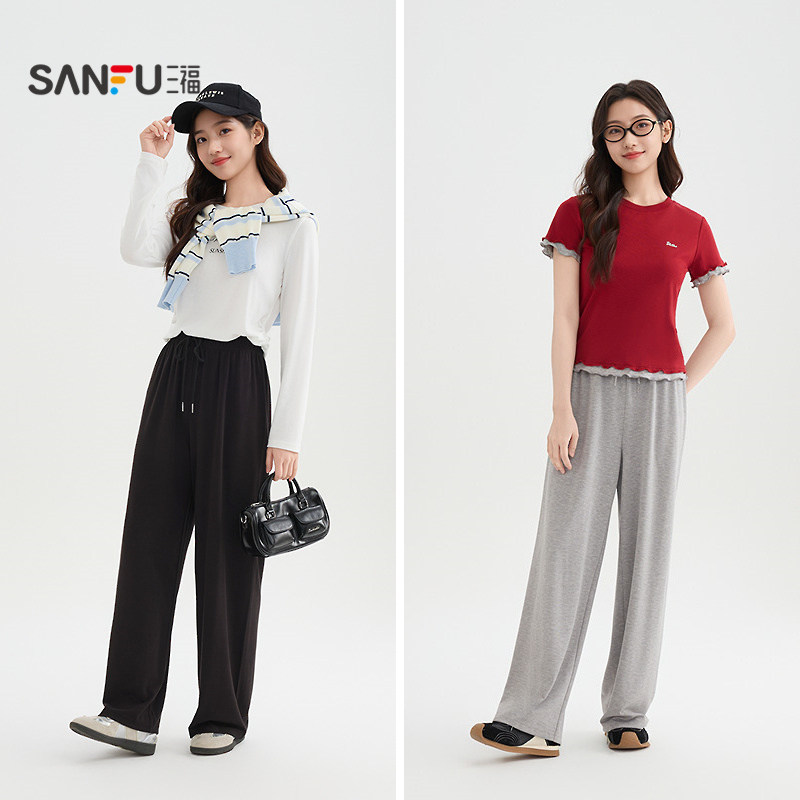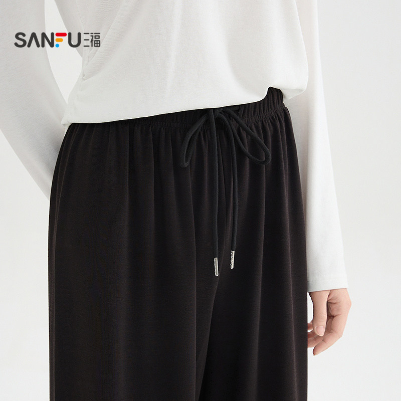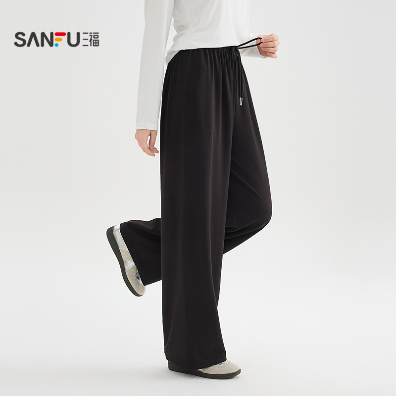 三福黑色裤子女2026新款夏季松弛感休闲裤宽松阔腿长裤女装517895