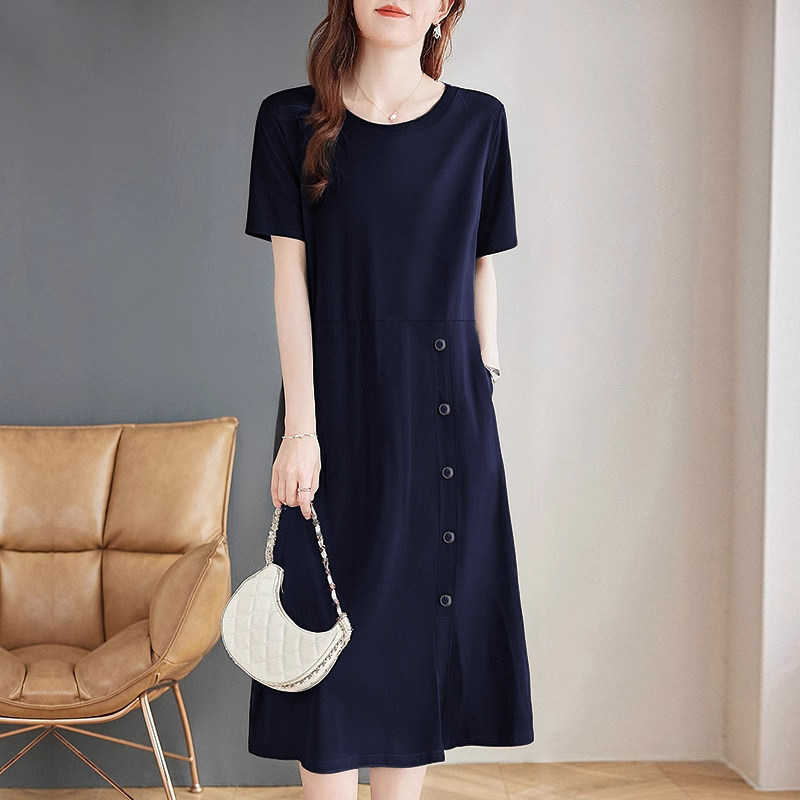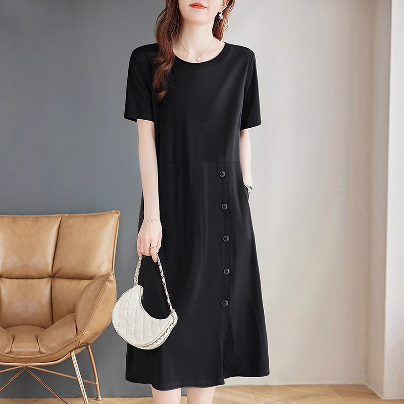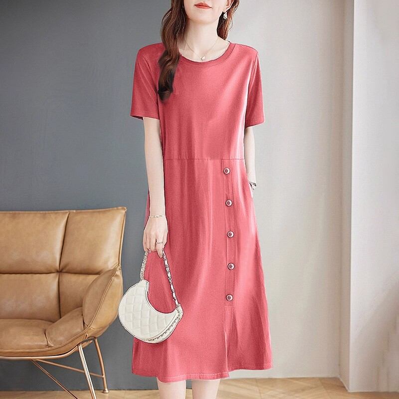 短袖连衣裙女2025年新款夏季休闲大码女士胖mm宽松显瘦中长款裙子