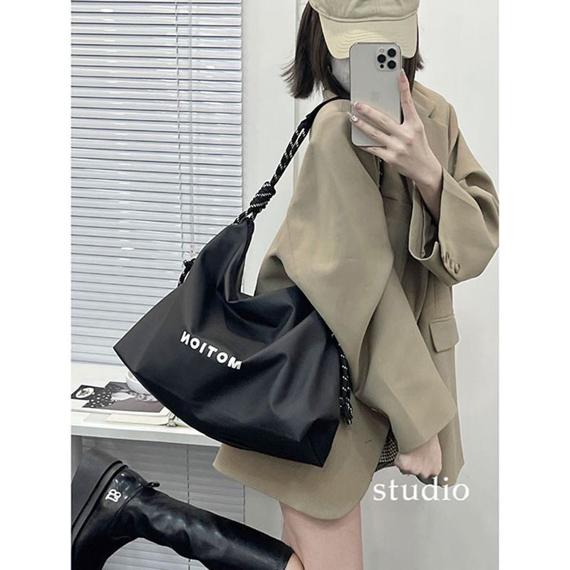 包包女2025新款单肩斜挎大容量大学生上课休闲百搭黑色帆布托特包