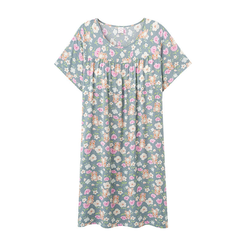 俞兆林女士睡裙夏中年女款大码胖mm人造棉睡衣自带胸垫短袖棉绸