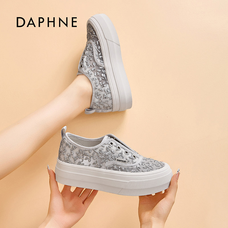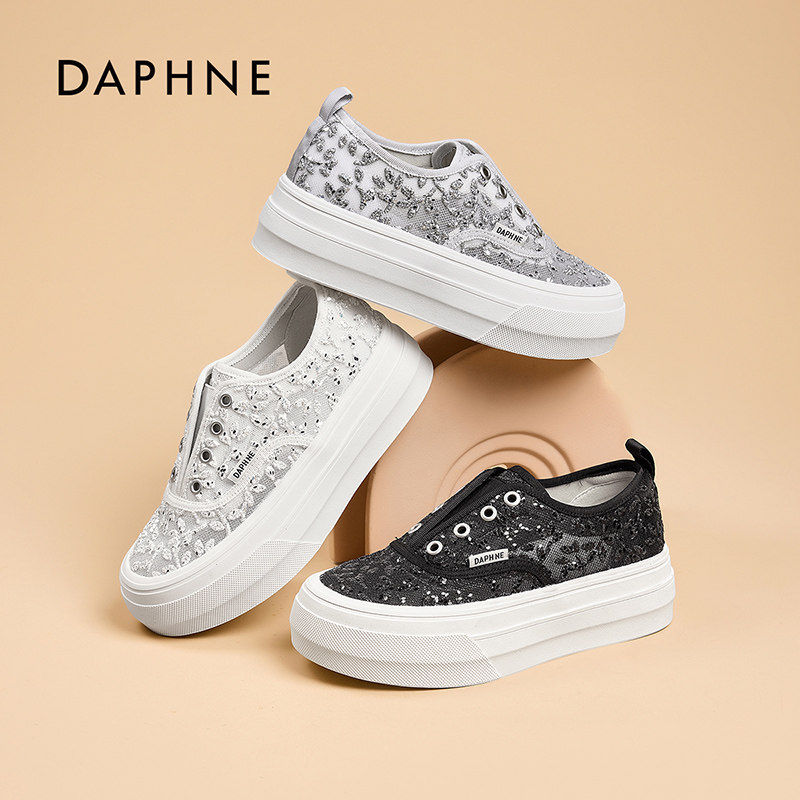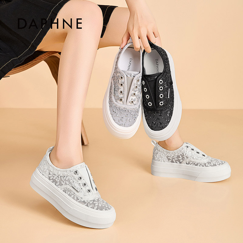 达芙妮厚底休闲鞋女2026年新款夏季潮流软底蕾丝透气不臭脚网面鞋