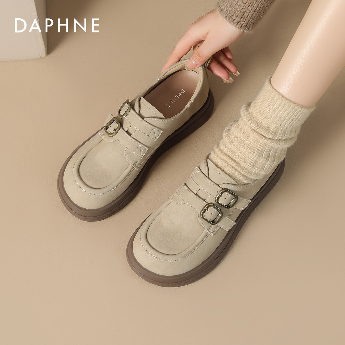 达芙妮平底乐福鞋女春季单鞋2026新款春秋鞋子厚底小皮鞋春款女鞋
