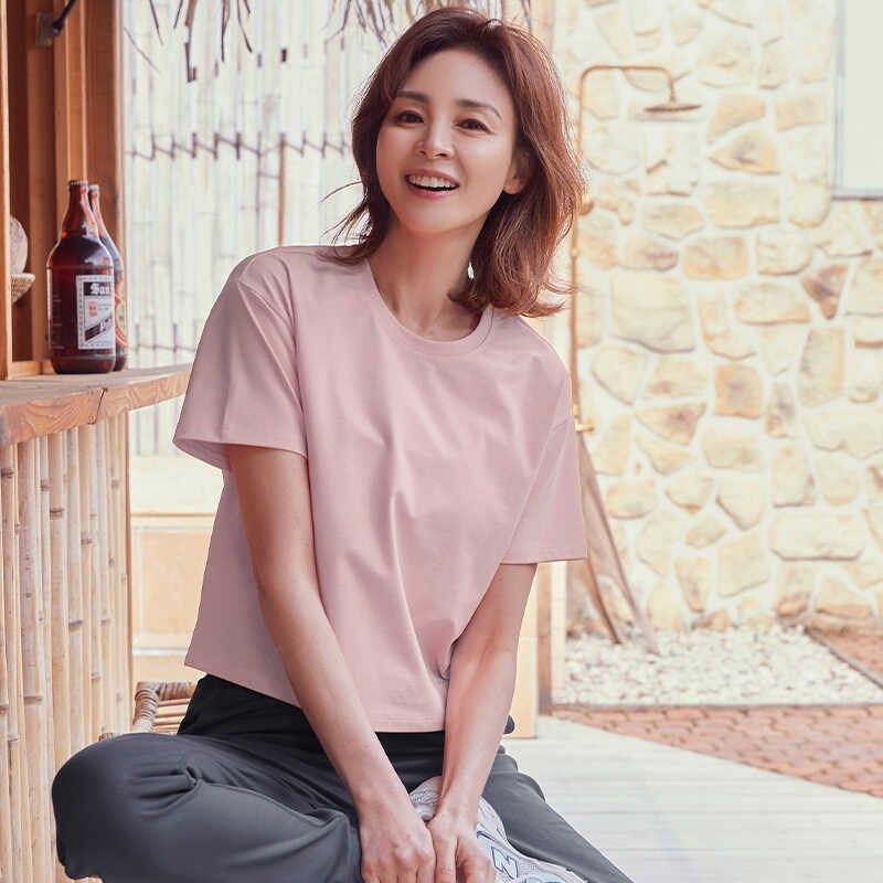 女士瑜伽T恤短款运动上衣透气健身速干短袖宽松显瘦跑步羽毛球服