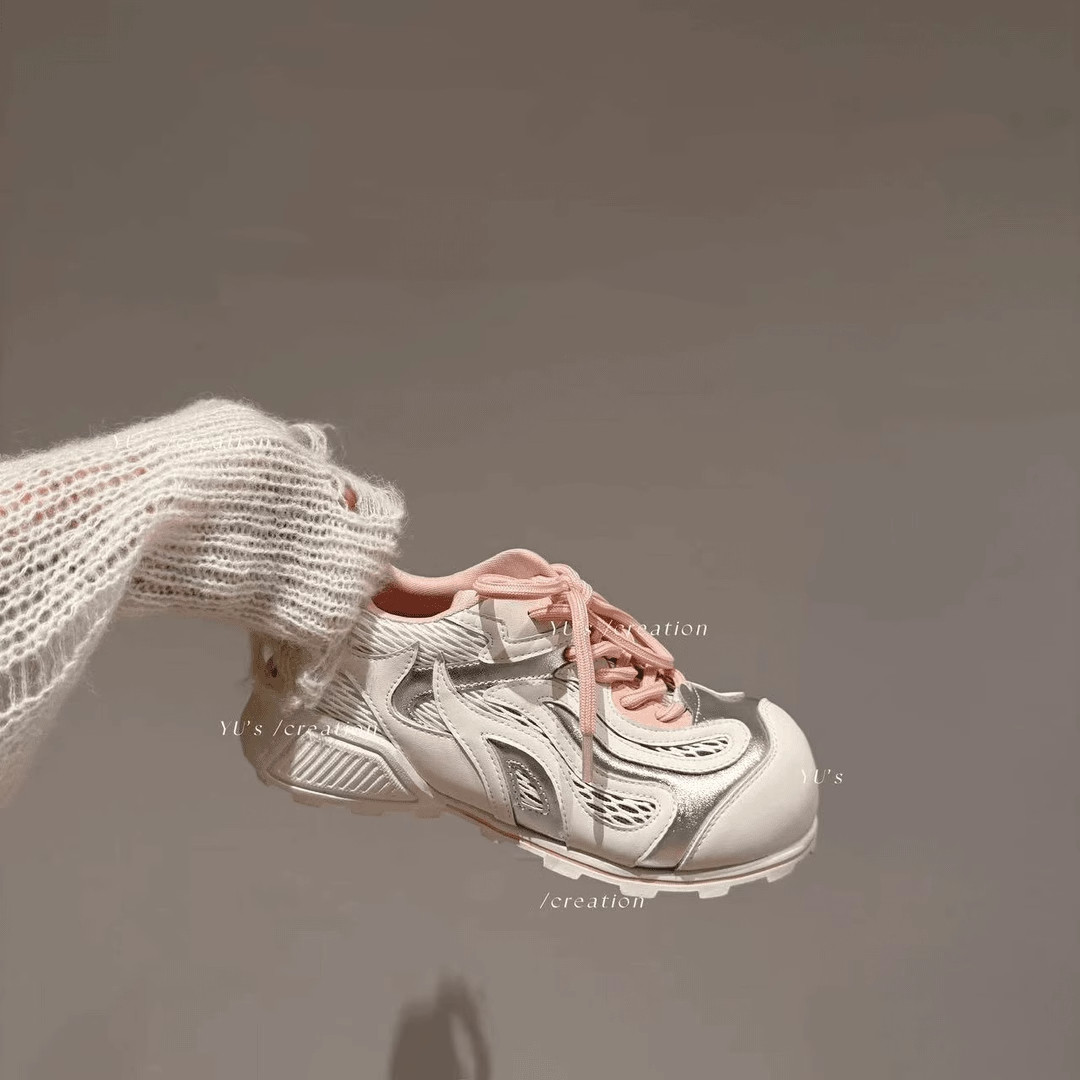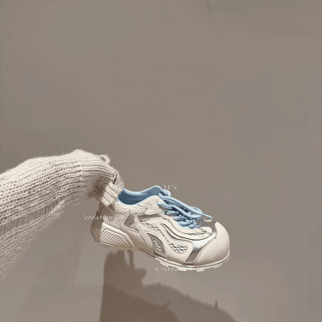失序美学保龄球鞋阿甘鞋女款2026夏季新款透气网面真皮休闲老爹鞋