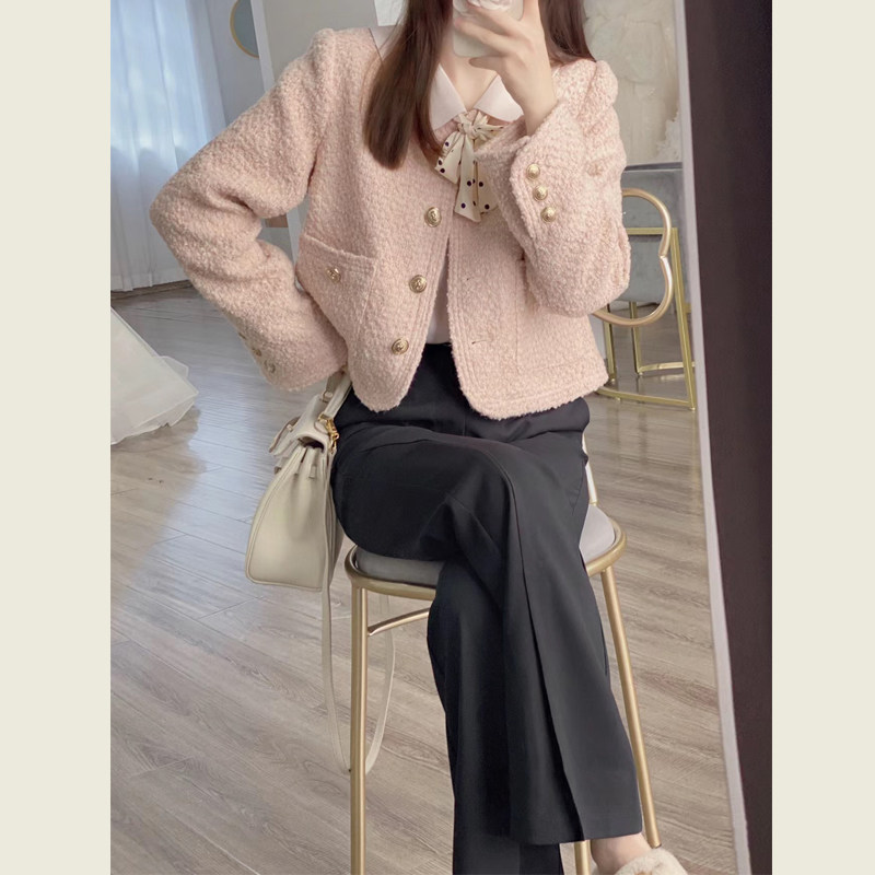 法式名媛气质粉色小香风外套女春秋季2024新款高级感百搭短款上衣