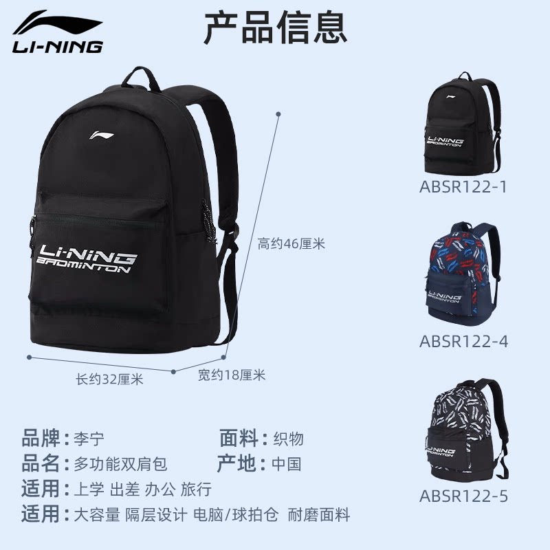 李宁羽毛球包官方正品运动双肩包大容量专业球拍包男女款ABSR122