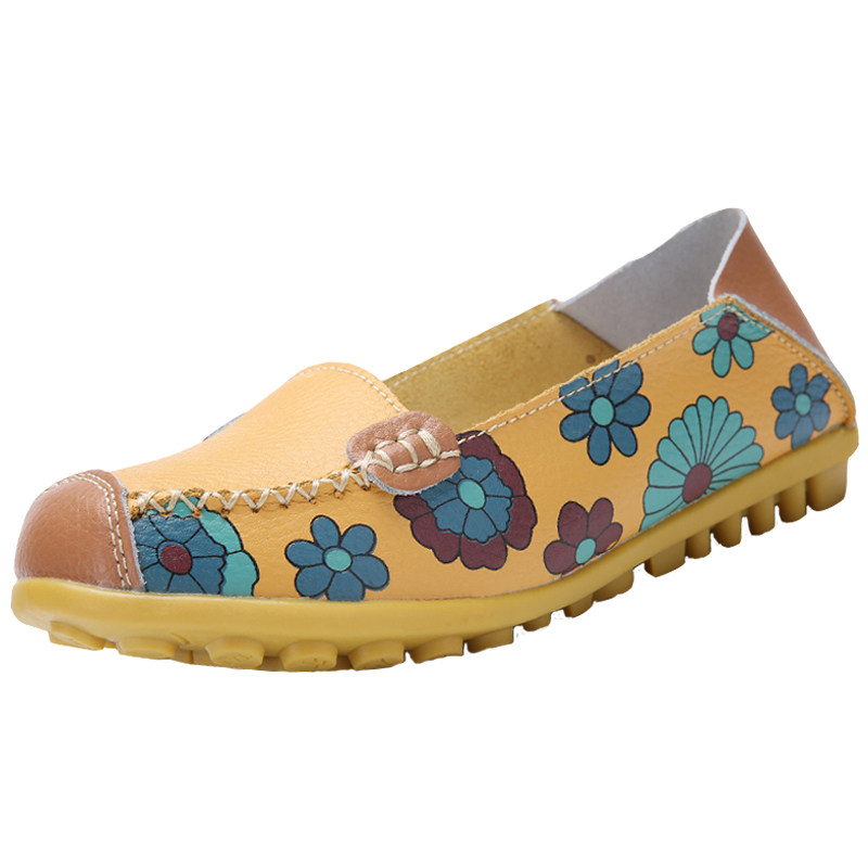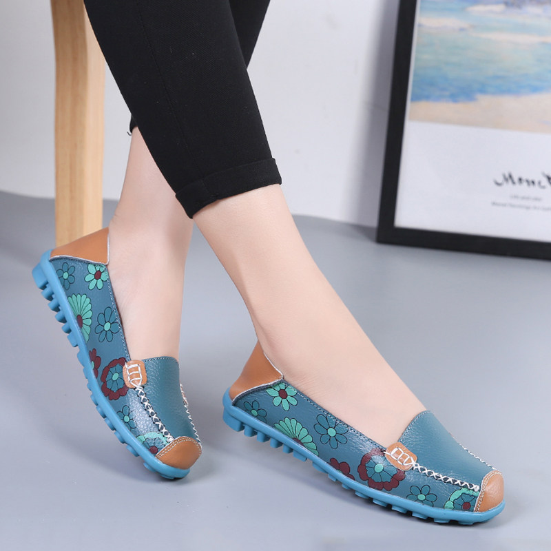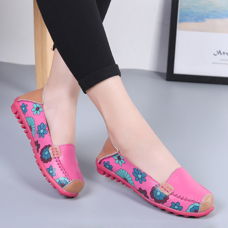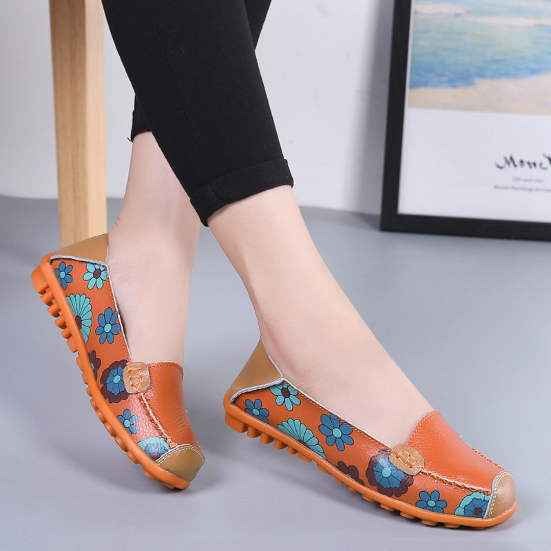 印花豆豆鞋女春款2026年真皮纯皮四季百搭社会人春秋大码妈妈单鞋