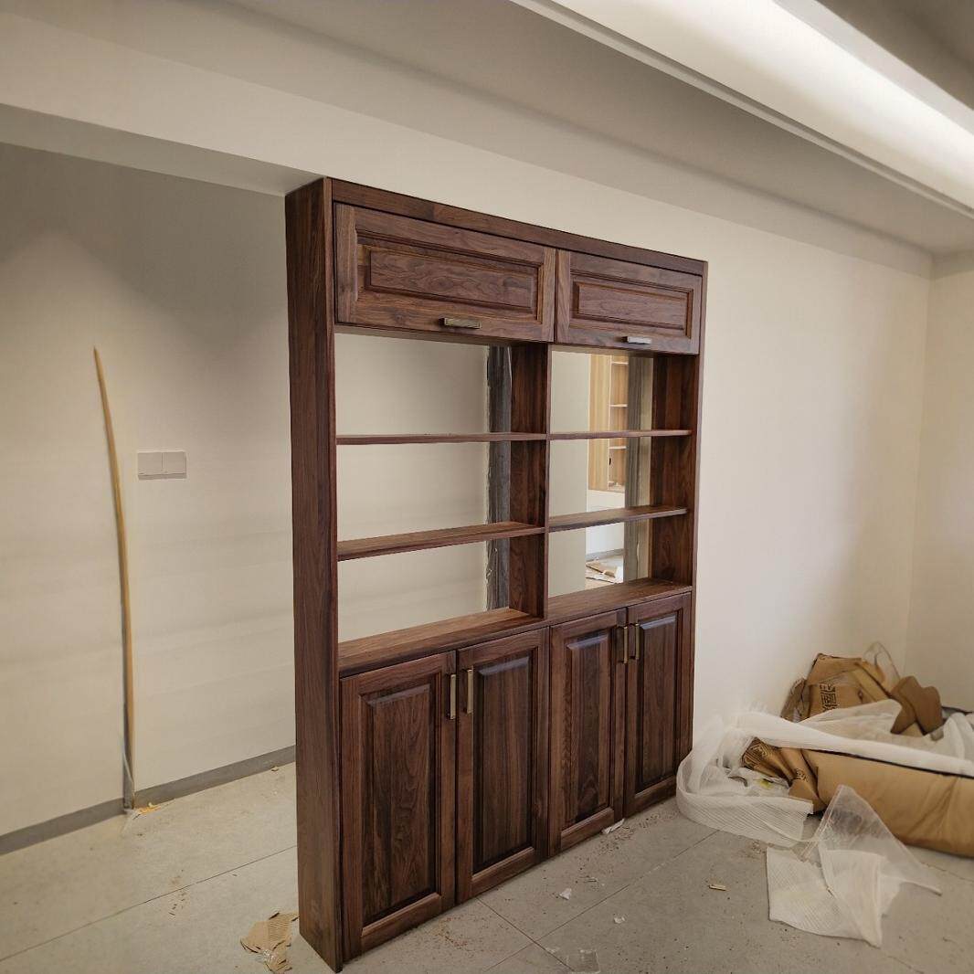 全屋定制新中式实木电视柜家用黑胡桃原木衣柜等储物柜工厂直销