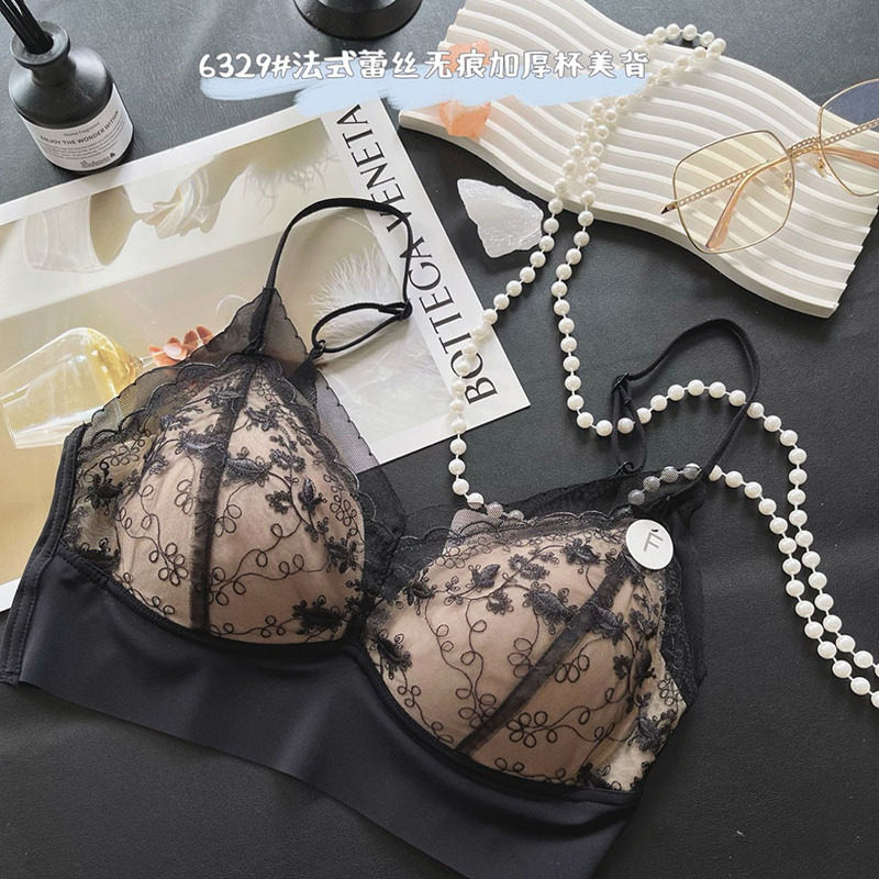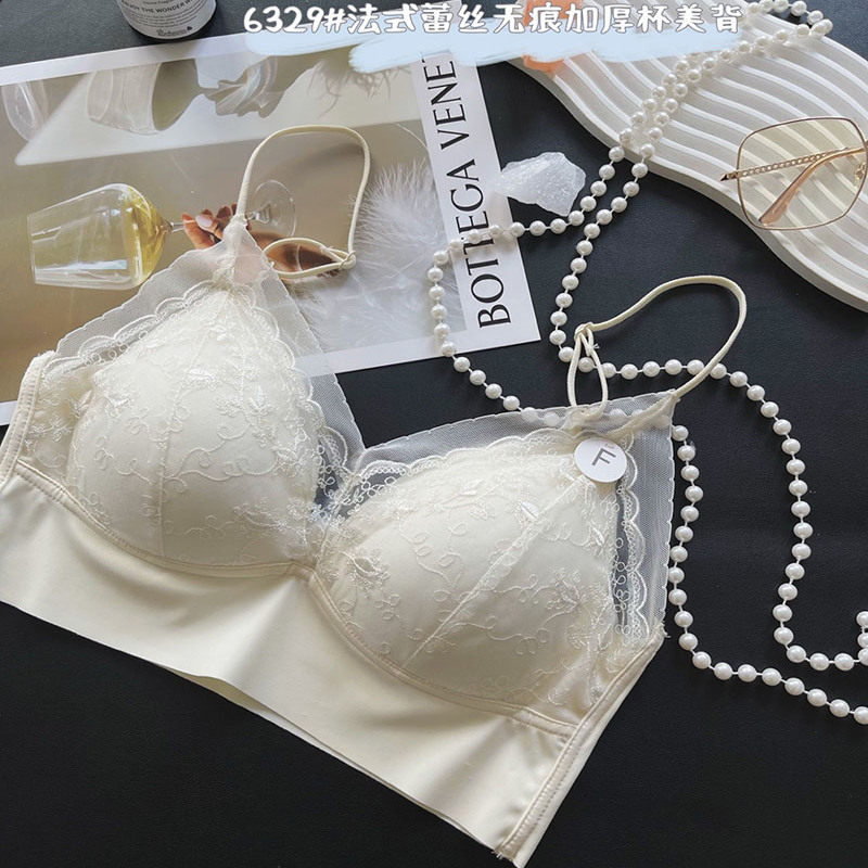 惠芝欣加厚杯美背内衣女小胸聚拢蕾丝性感法式吊带背心一体文胸罩
