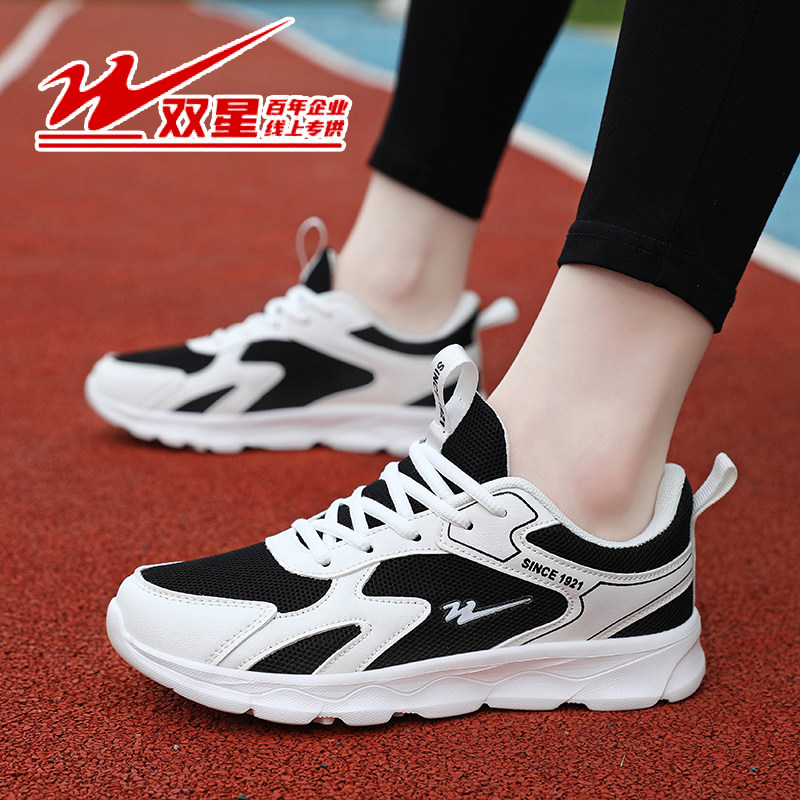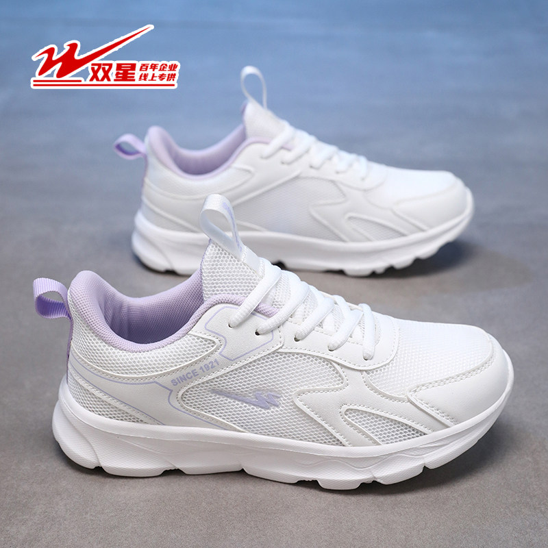 双星运动鞋女透气网面小白鞋新款春季女鞋轻便跑步鞋百搭软底单鞋
