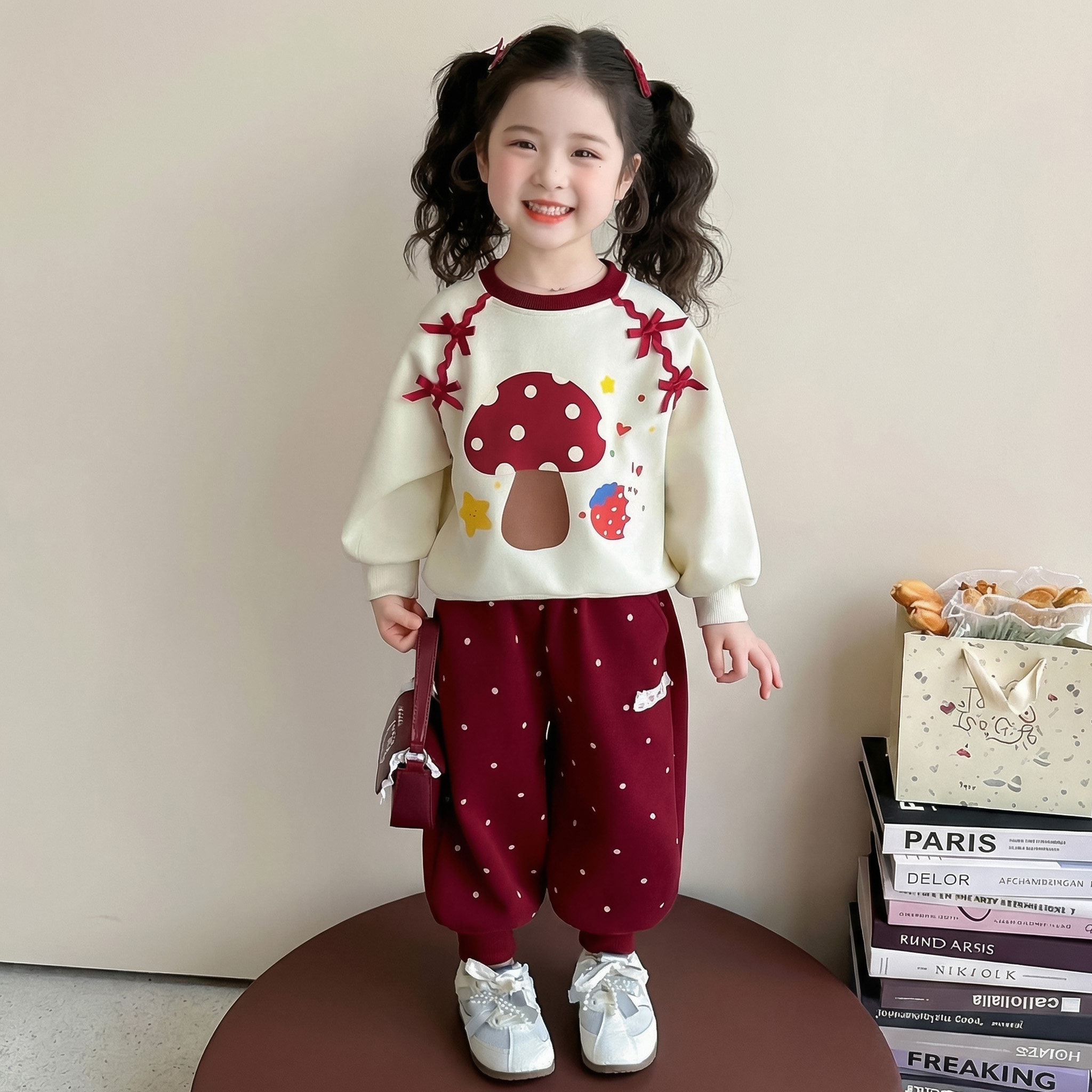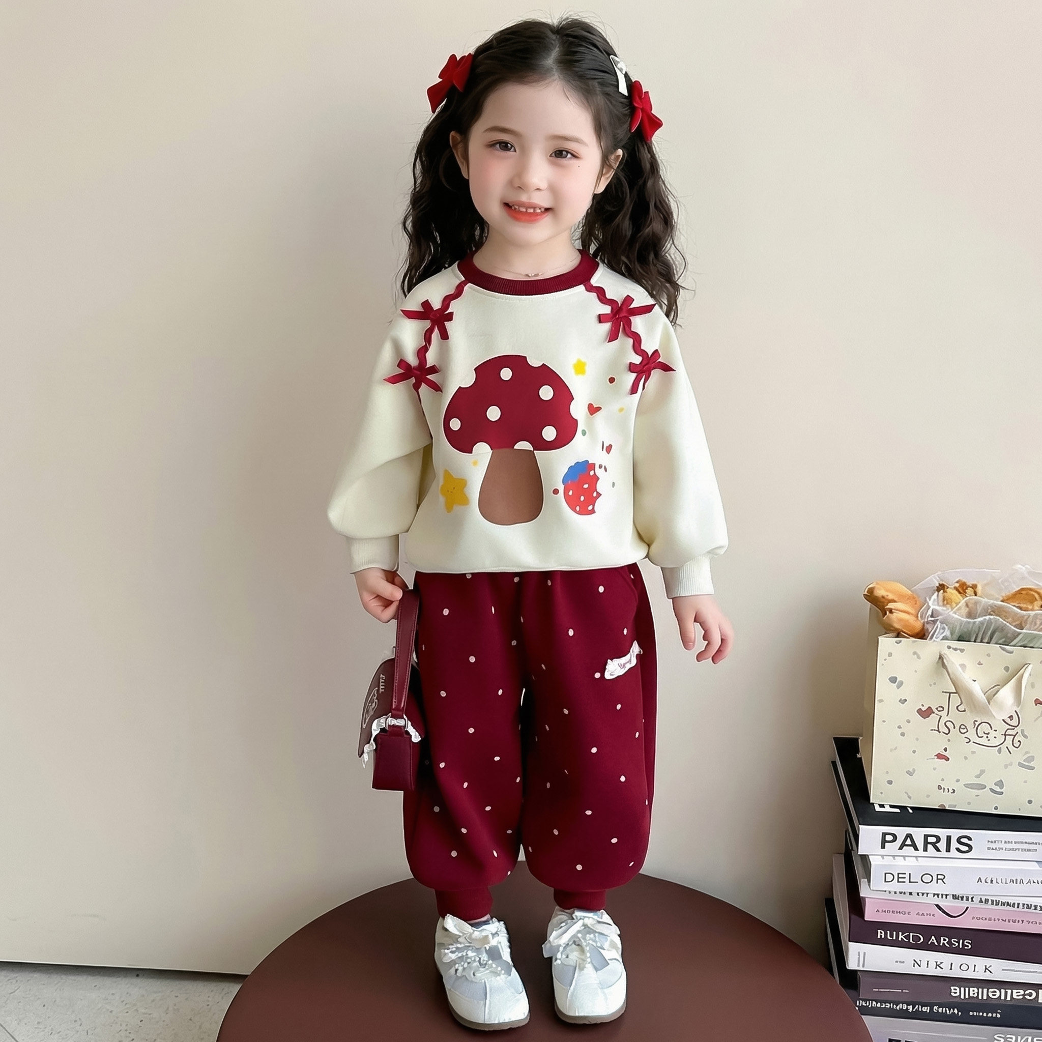 女童春秋款蘑菇套装2026新款洋气时髦儿童女宝宝春季春装早春卫衣