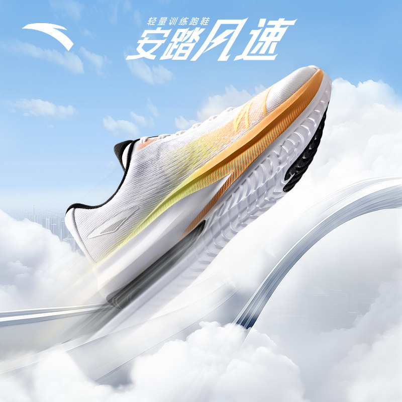 安踏风速运动鞋男鞋2026新款春季网面透气跑步鞋黑色减震跑鞋