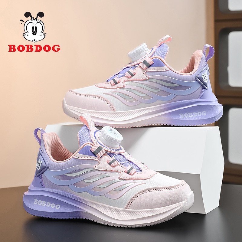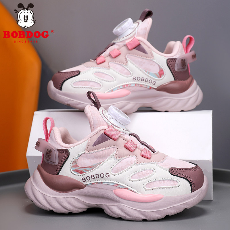 巴布豆女童鞋2026春秋新款网面透气运动鞋子公主女孩粉色百搭皮面