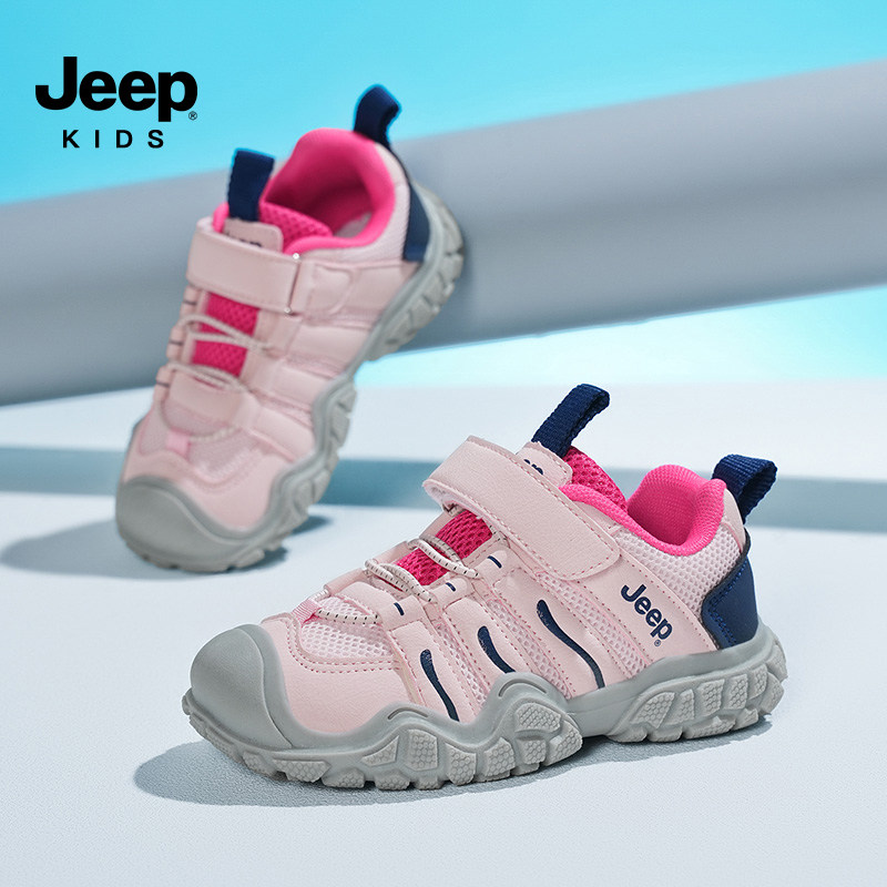 Jeep女童鞋2026春秋新款网面透气儿童运动鞋男童老爹鞋软底防滑