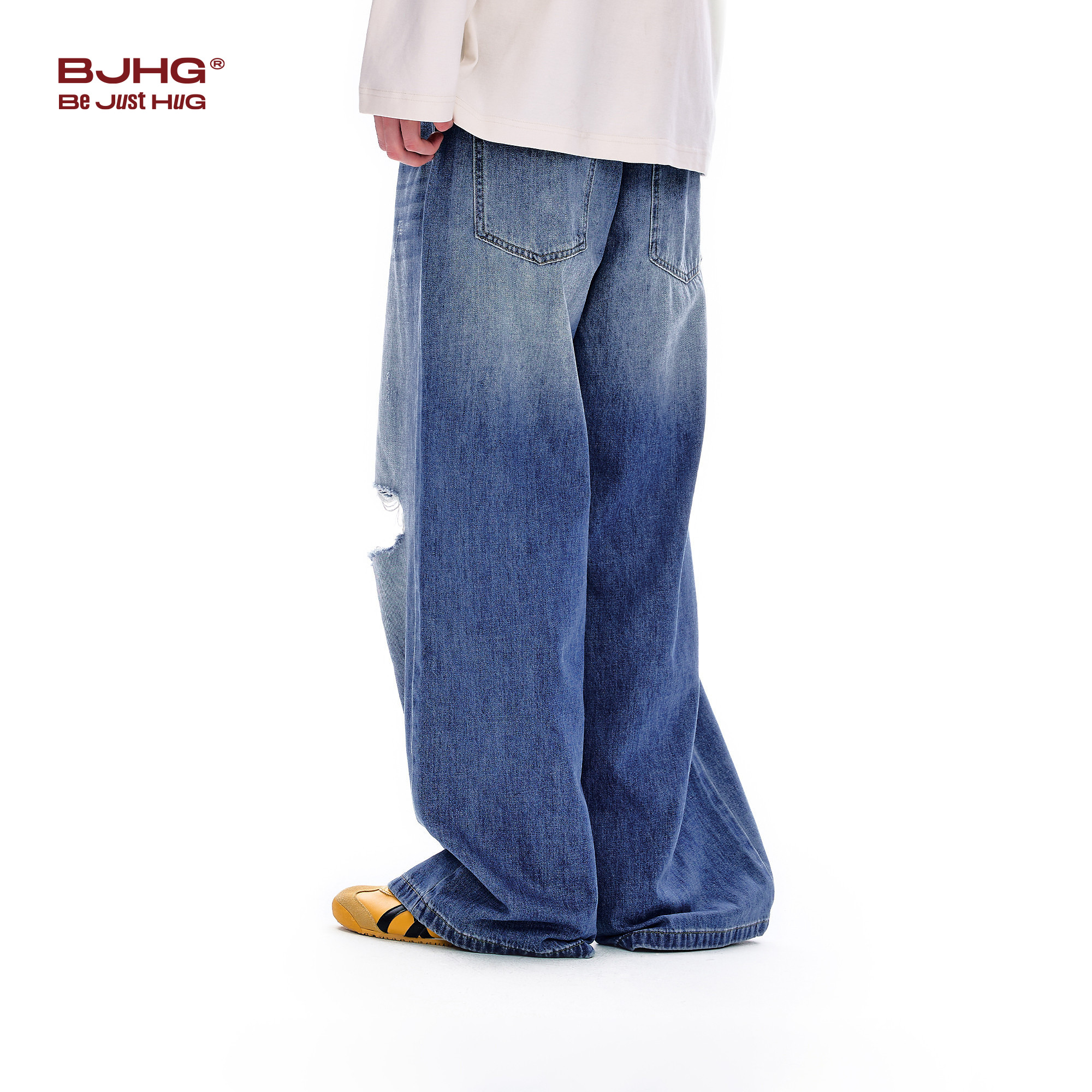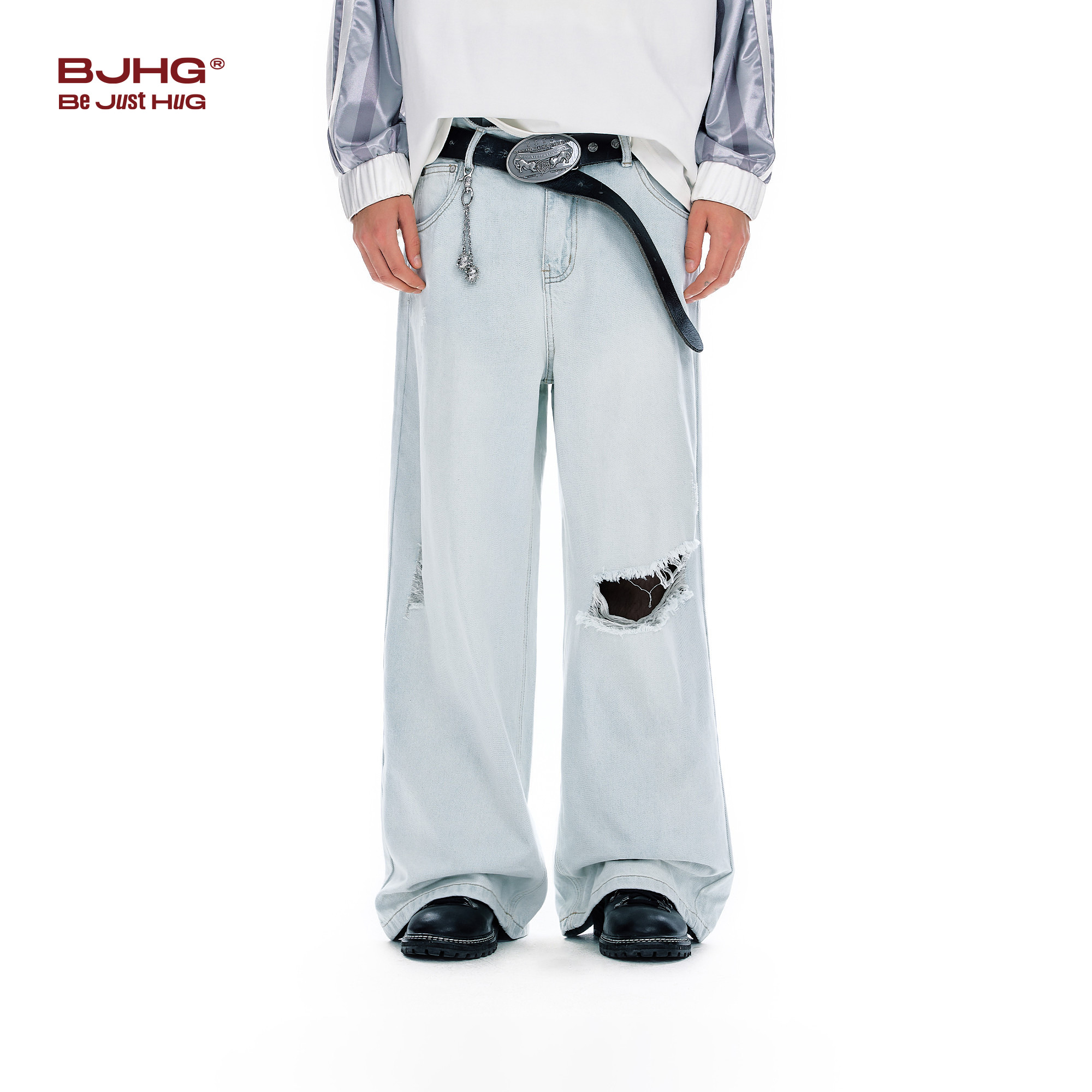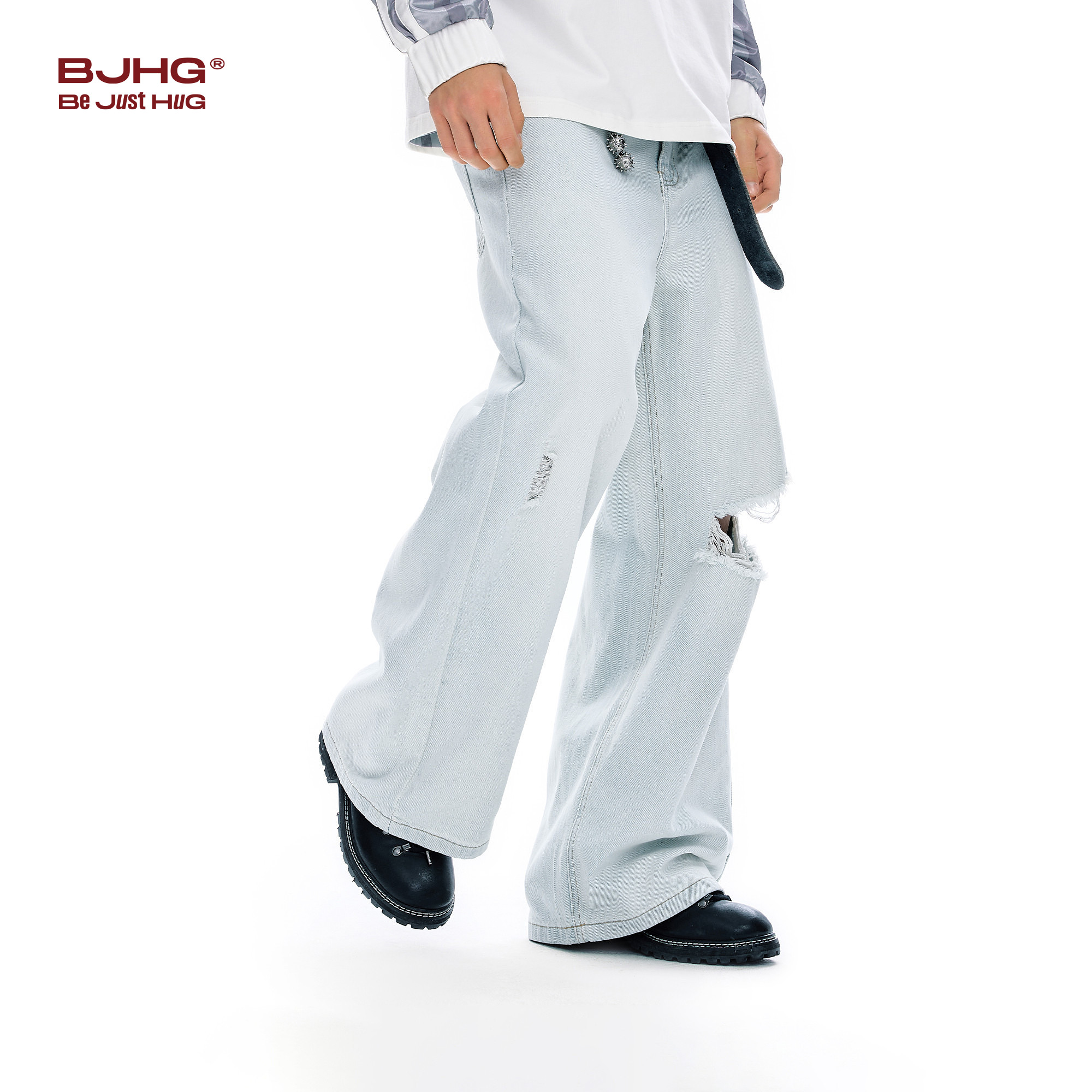 BJHG不计后果直筒牛仔裤男款2026新款春美式高街破洞潮牌长裤子女
