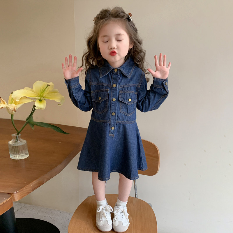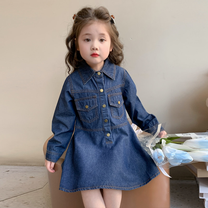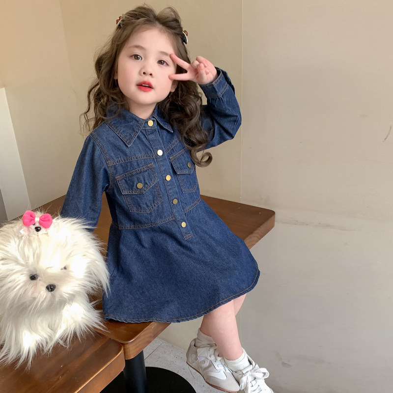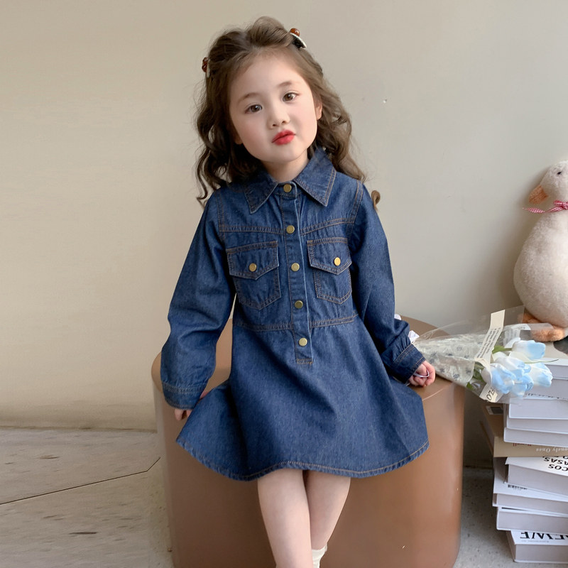 女童春秋牛仔裙子春装2026新款儿童洋气春季连衣裙宝宝纯色公主裙