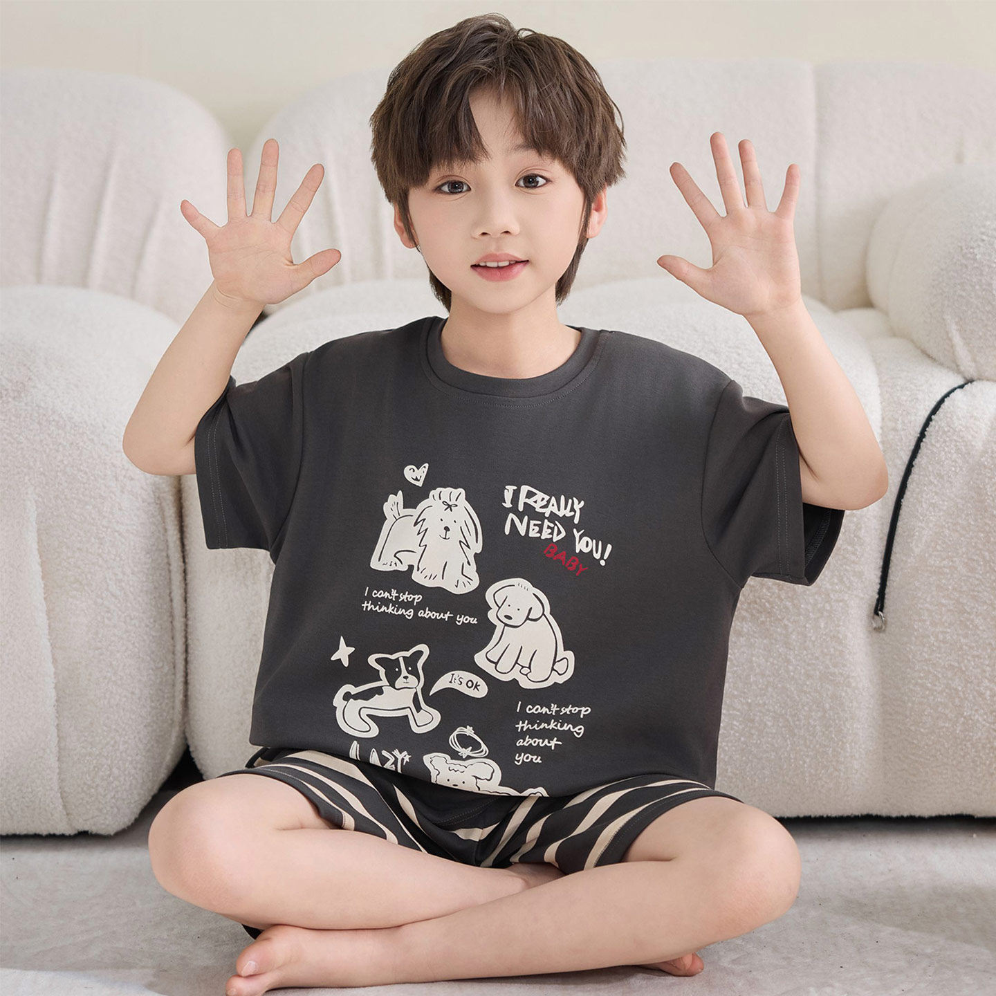 311线报网描述:男童卡通夏季纯棉薄款短袖短裤青少年家居服