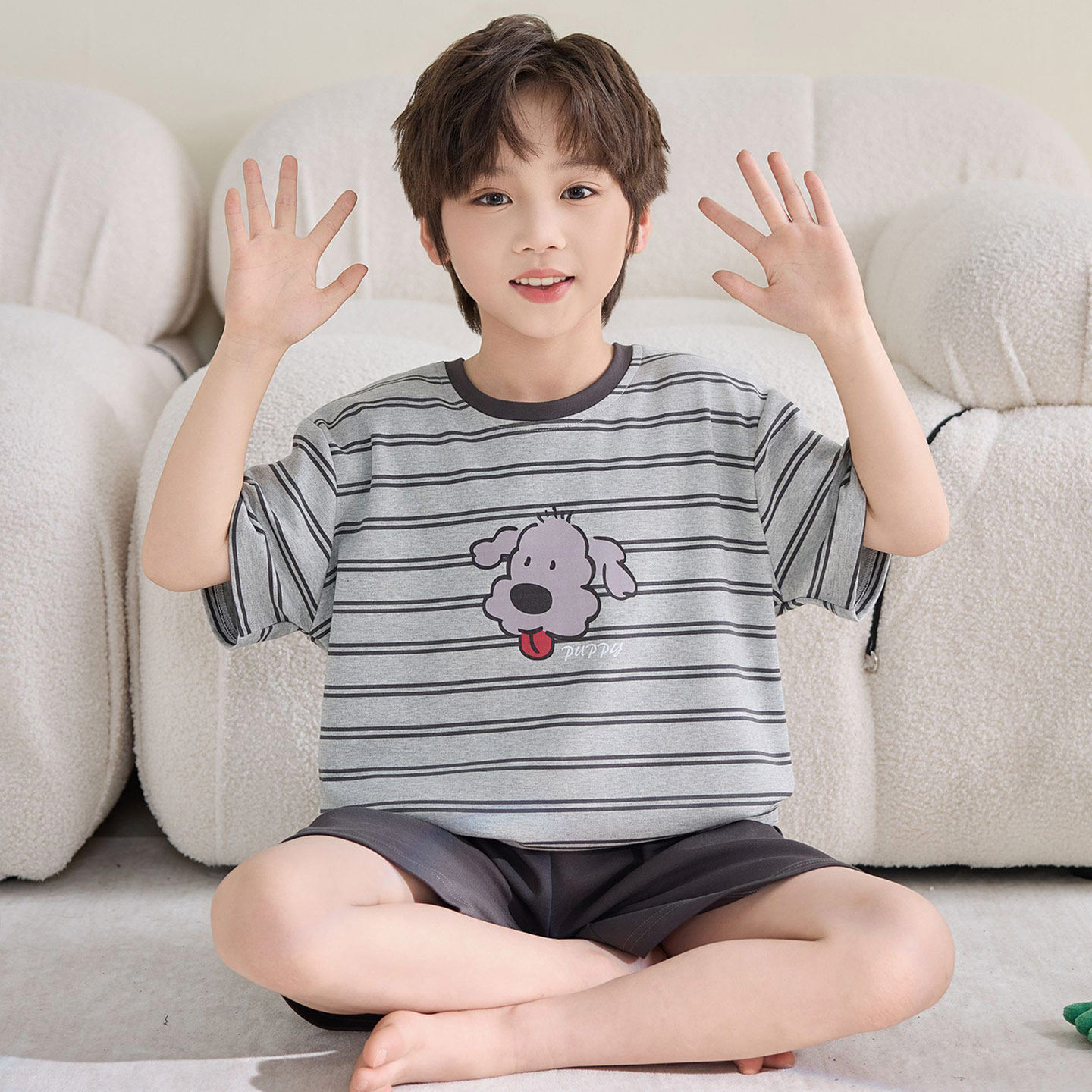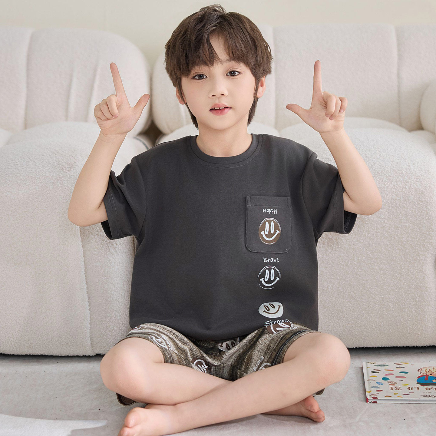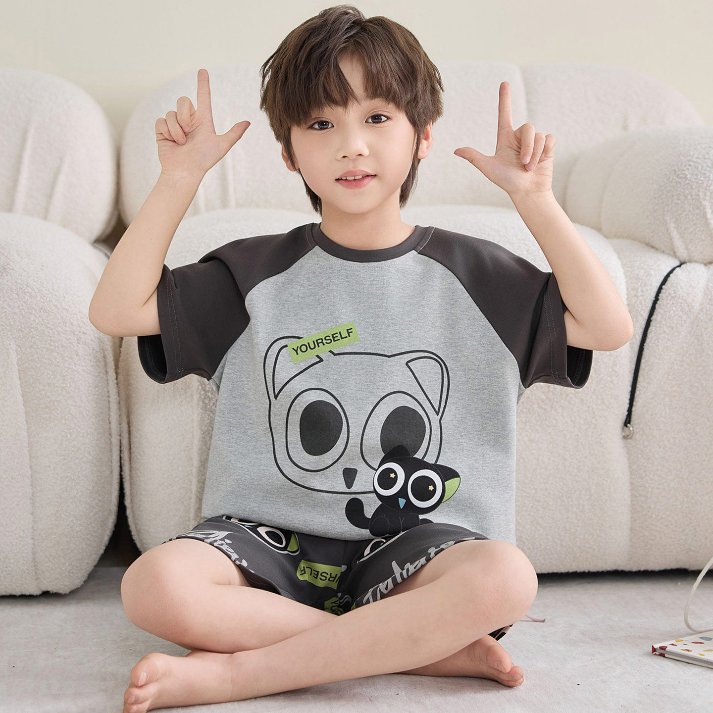 男童睡衣儿童2026新款卡通夏季纯棉薄款短袖短裤青少年男孩家居服