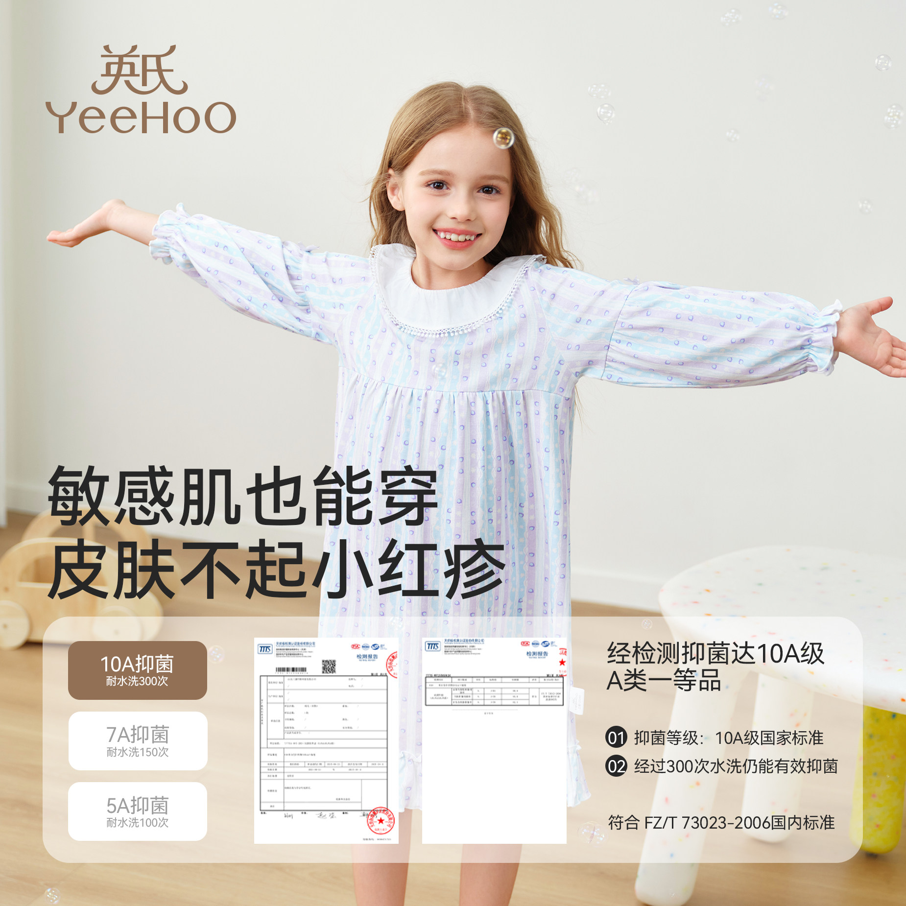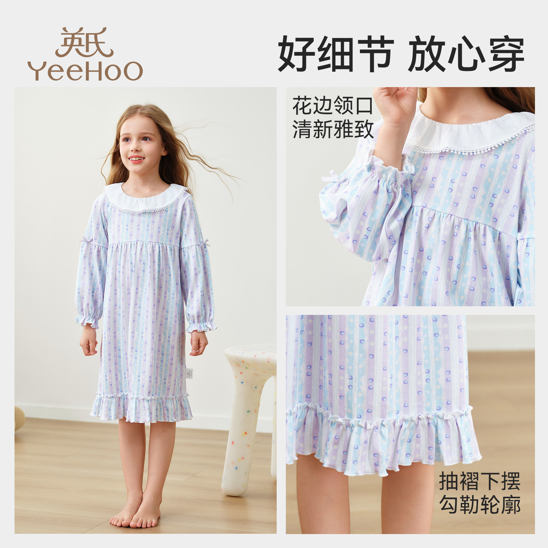 英氏女童睡裙纯棉长袖春夏新款宝宝居家女孩家居洋气公主风连衣裙