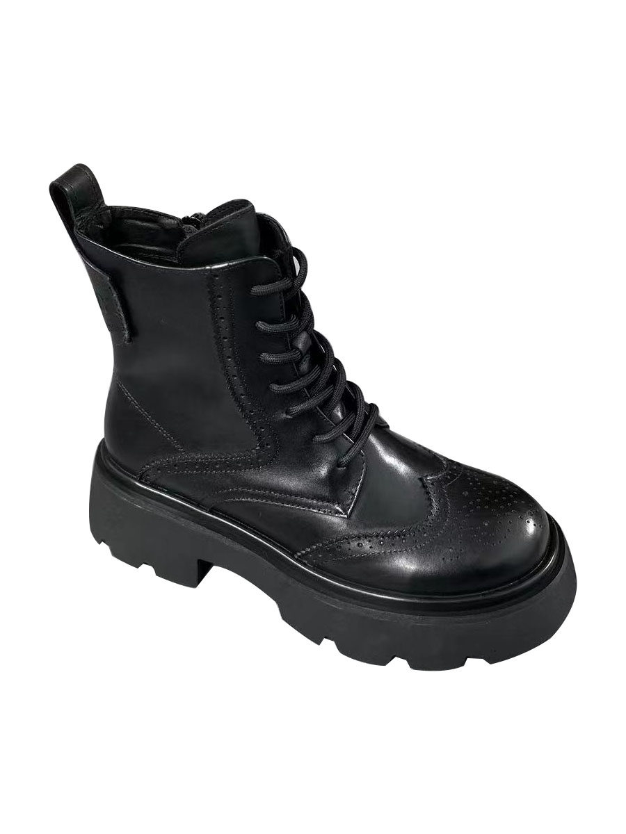 头层胎牛皮马丁靴女英伦风2025秋冬新款厚底增高单鞋复古松糕短靴