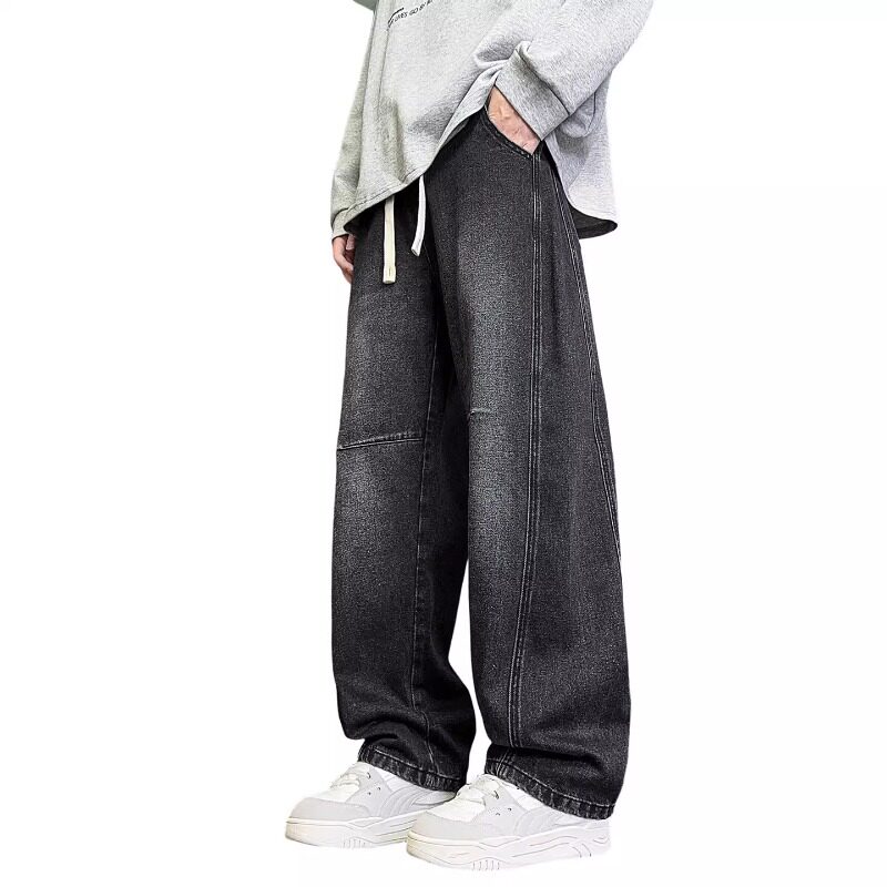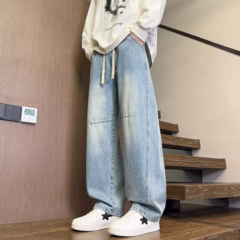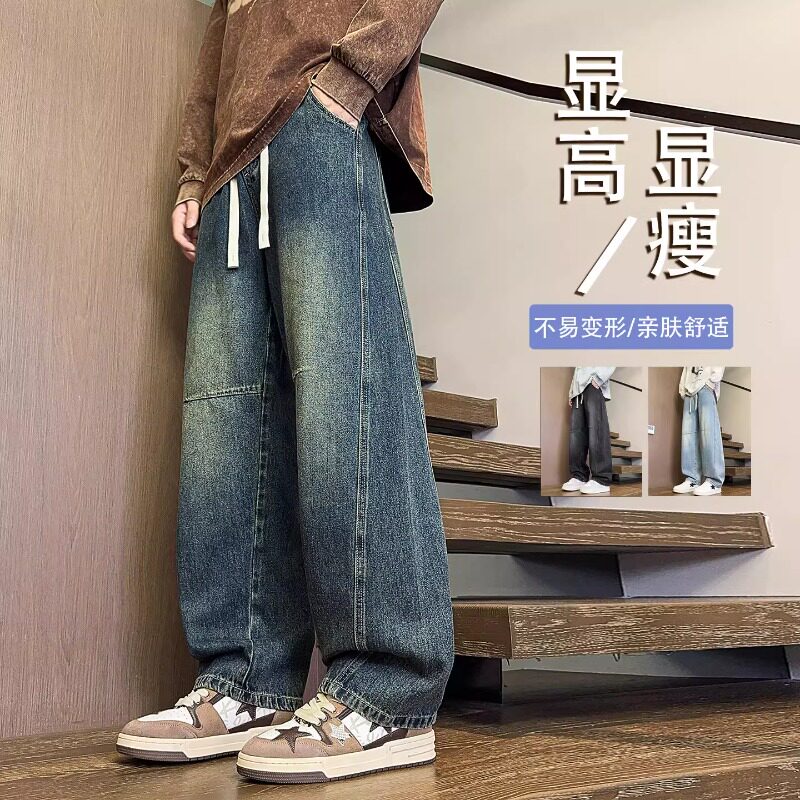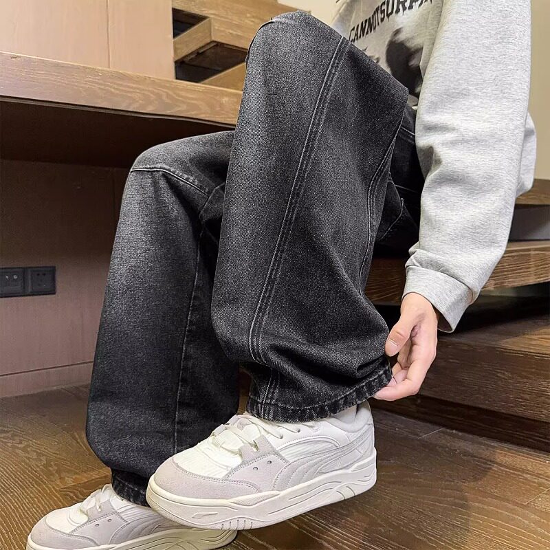 春秋款牛仔裤男孩初中高中学生帅气青少年男装阔腿直筒休闲长裤子